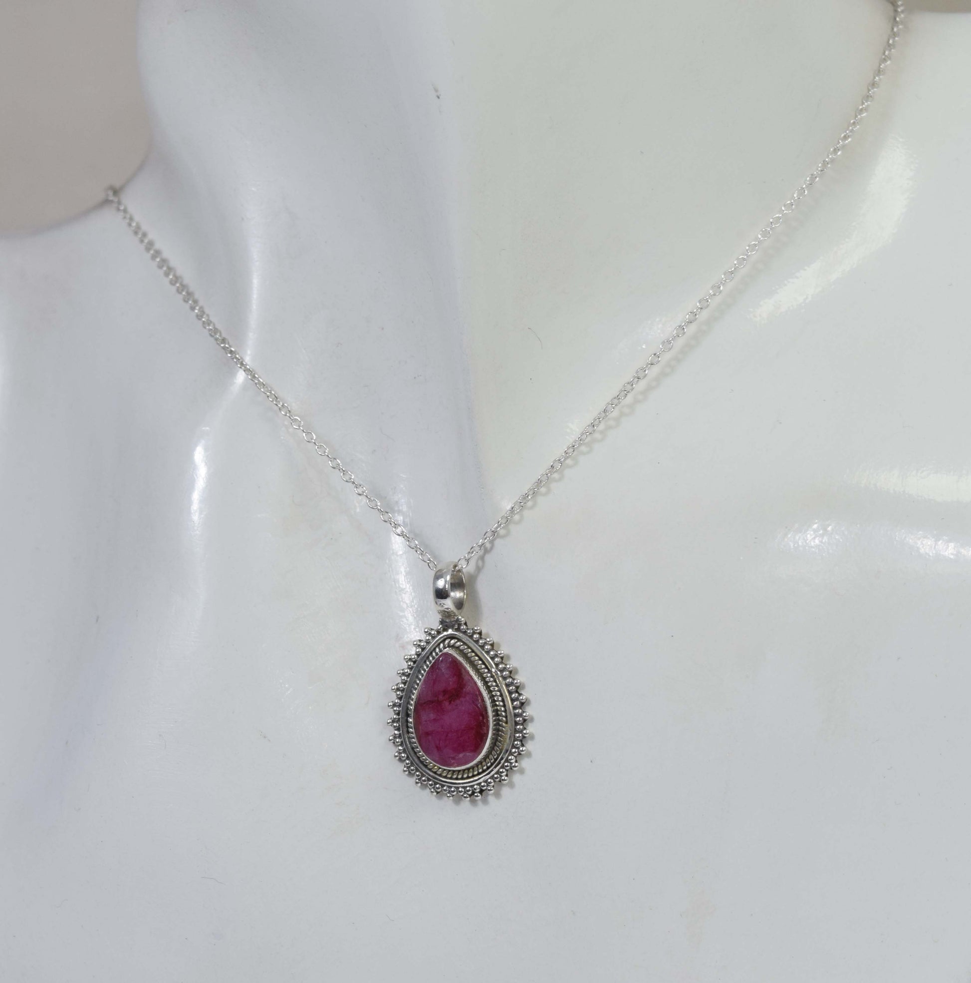 925 Solid Sterling Cut Simulated Ruby Chain Pendant-19 Inch
