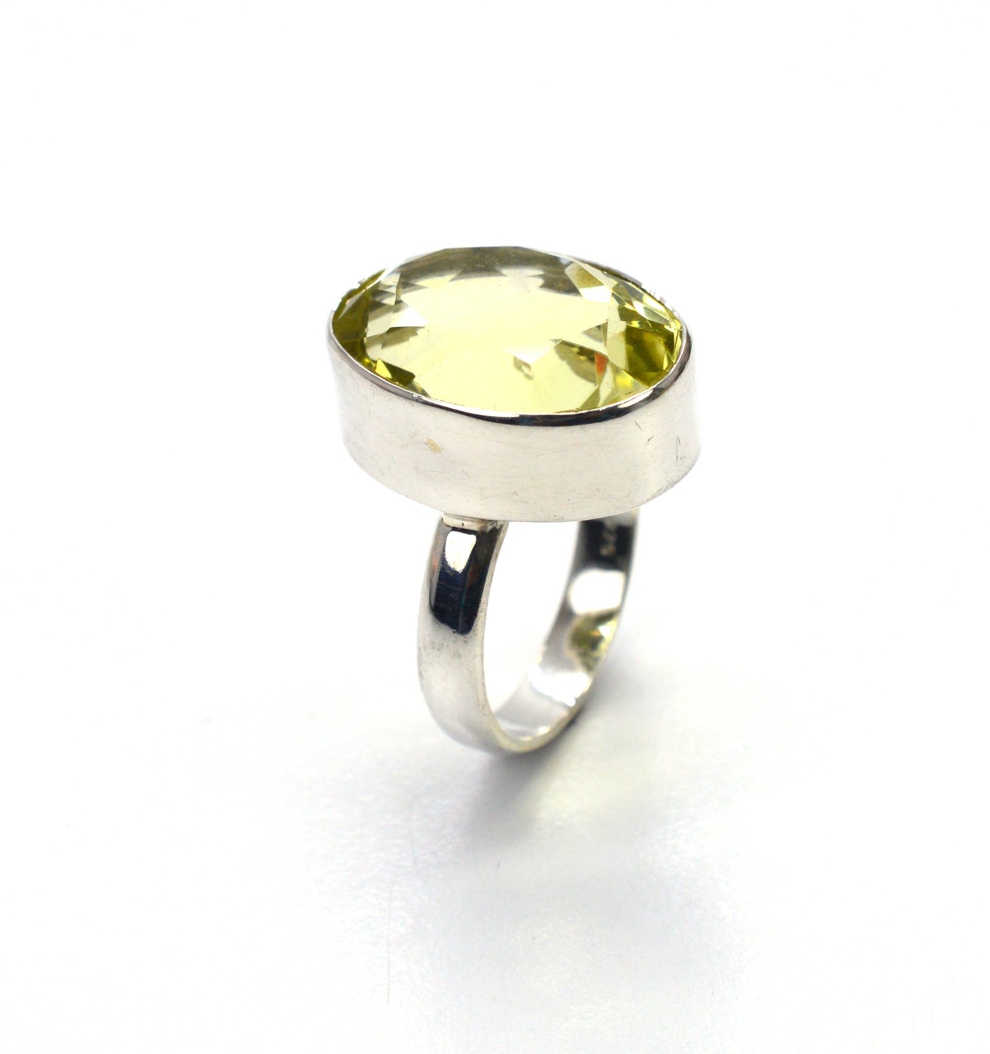 925 SOLID STERLING FACETED LEMON QUARTZ RING -5.5 US