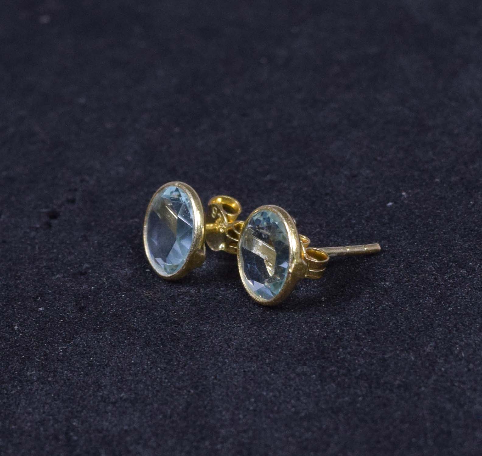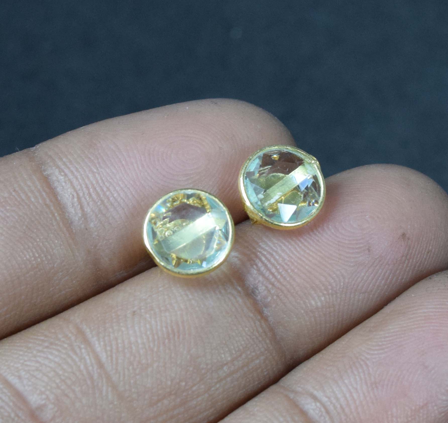 925 Solid Sterling Silver 24CT Gold Overlay Cut Apatite Quartz Stud