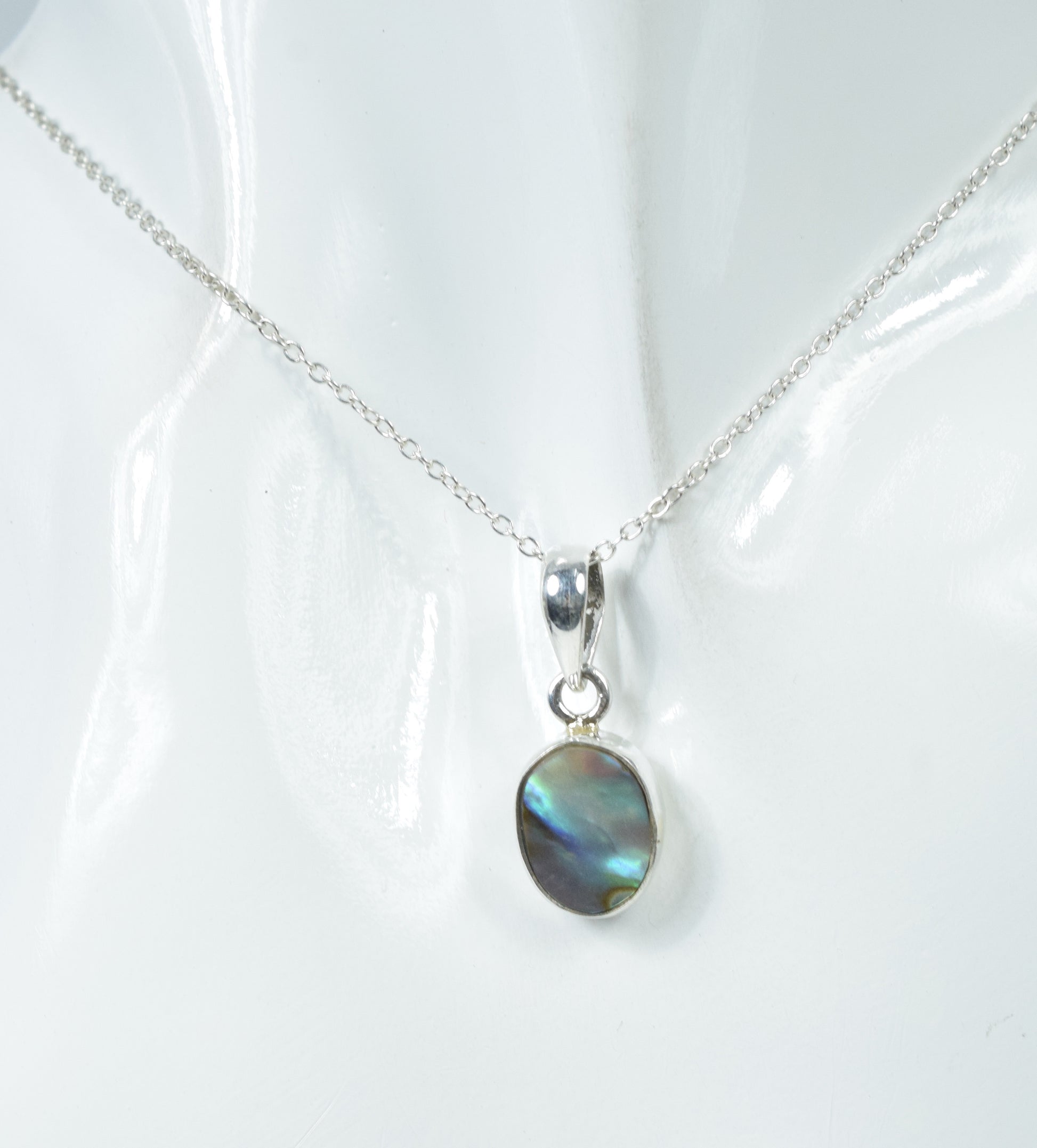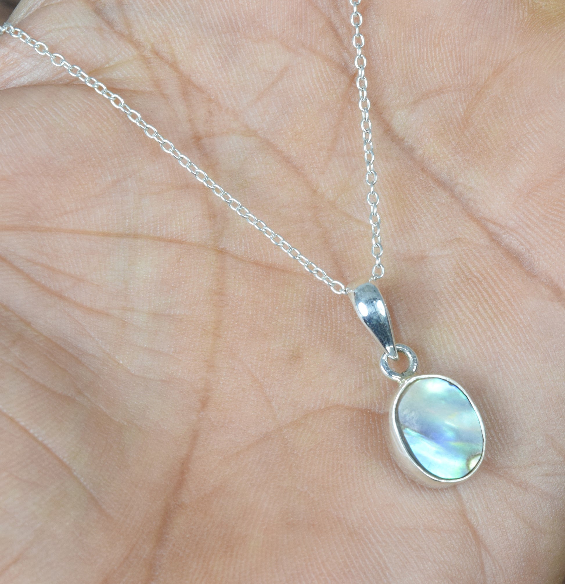 925 Solid Sterling Silver Abalone Shell Chain Pendant-18.8 Inch