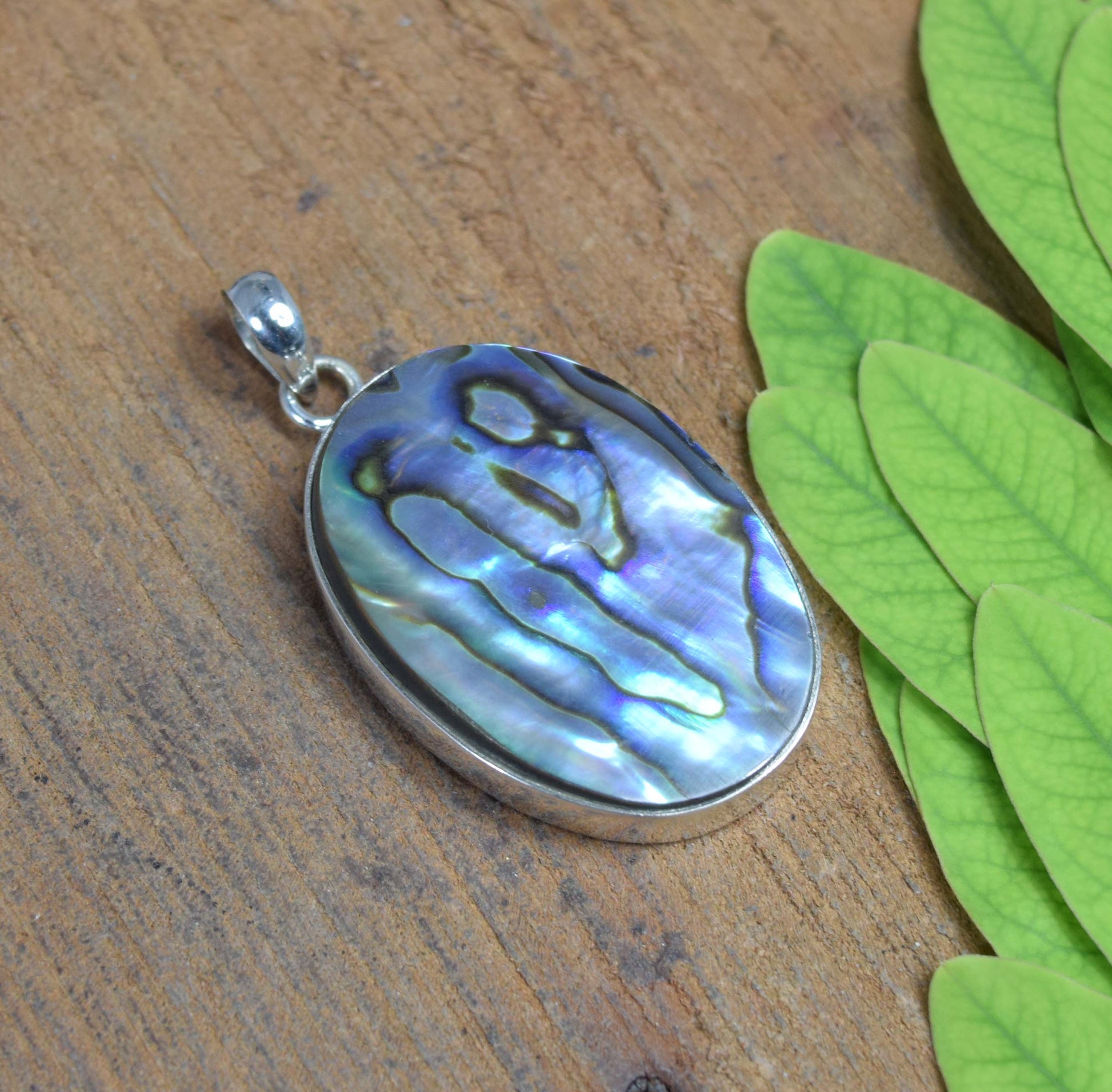 925 Solid Sterling Silver Abalone Shell Pendant-1.9 Inch