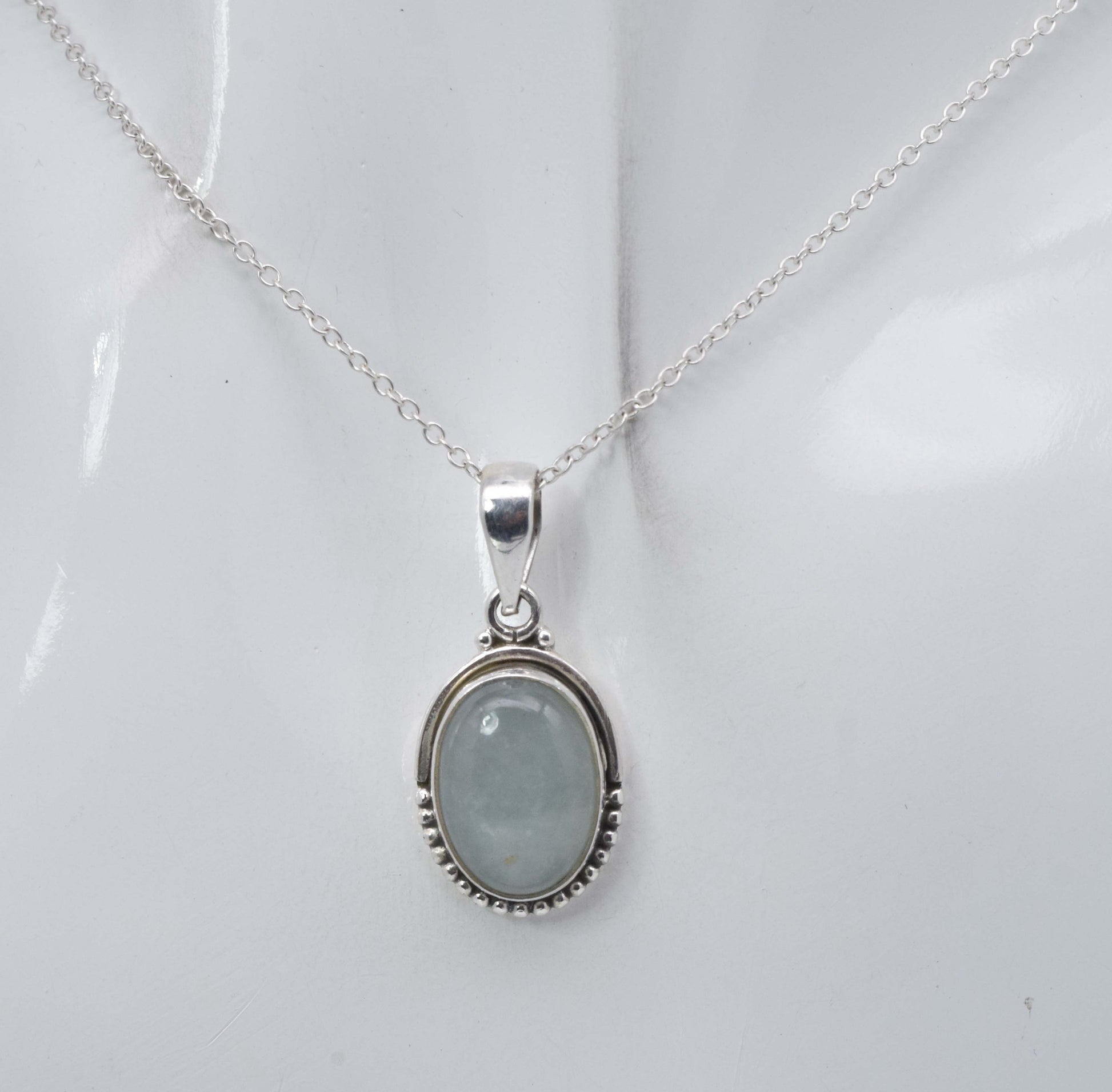 925 Solid Sterling Silver Aquamarine Chain Pendant-19 Inch