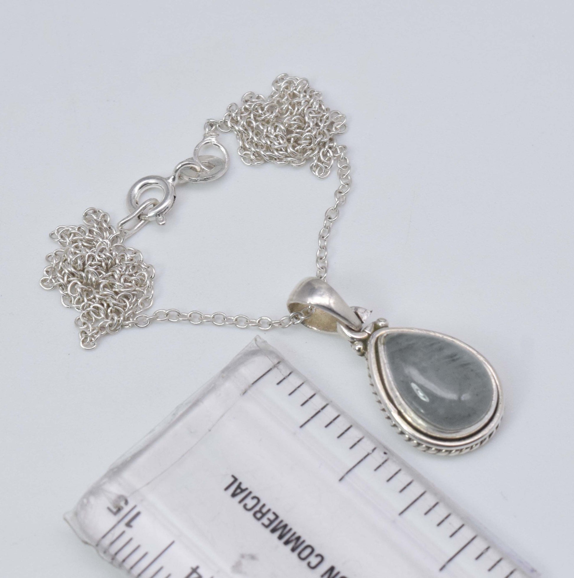 925 Solid Sterling Silver Aquamarine Chain Pendant-19 Inch
