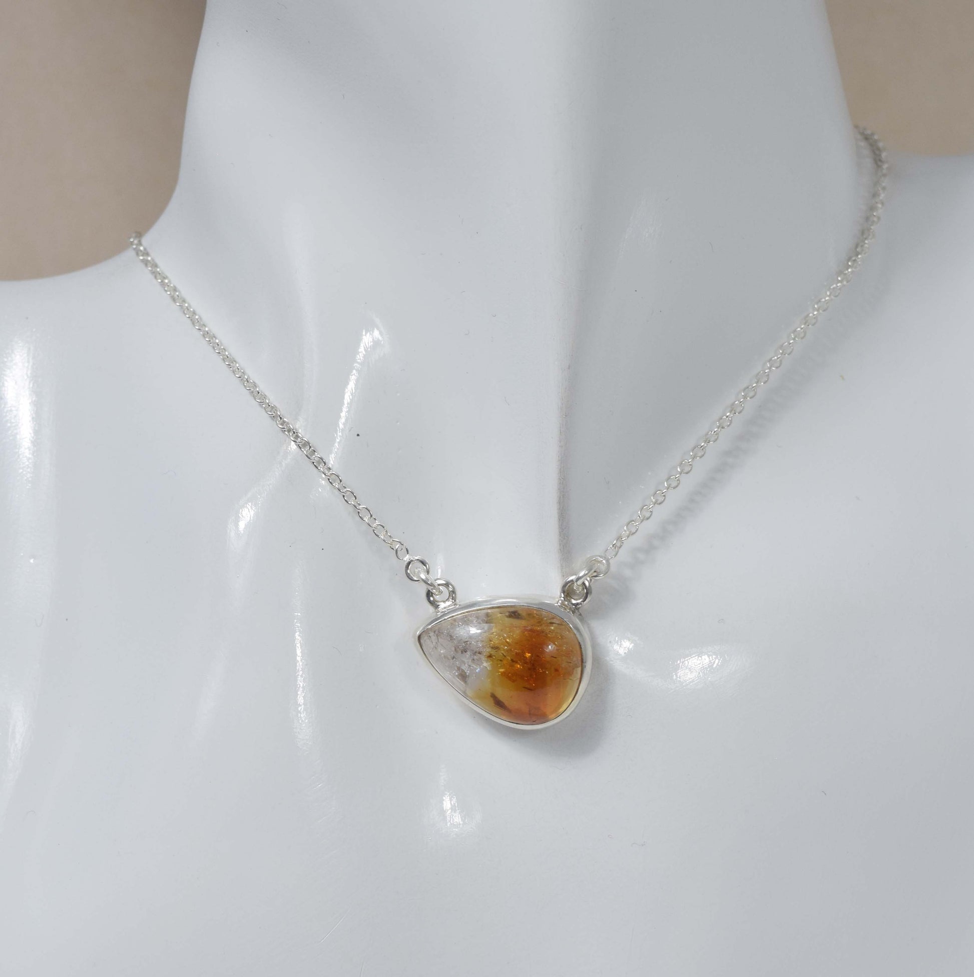 925 Solid Sterling Silver Bio Citrine Necklace -16 Inch
