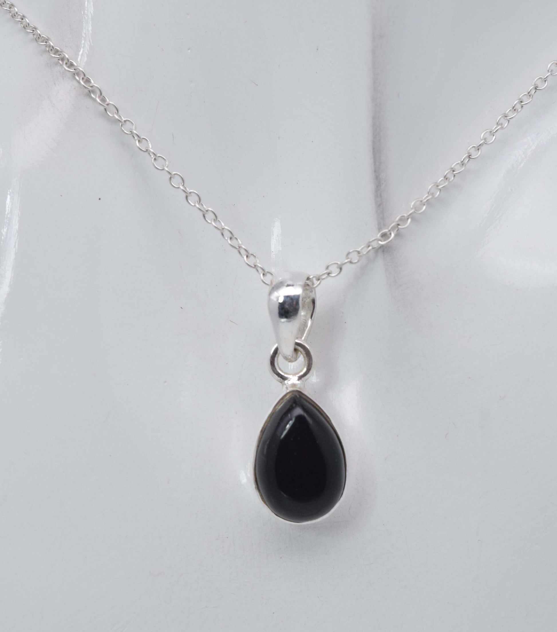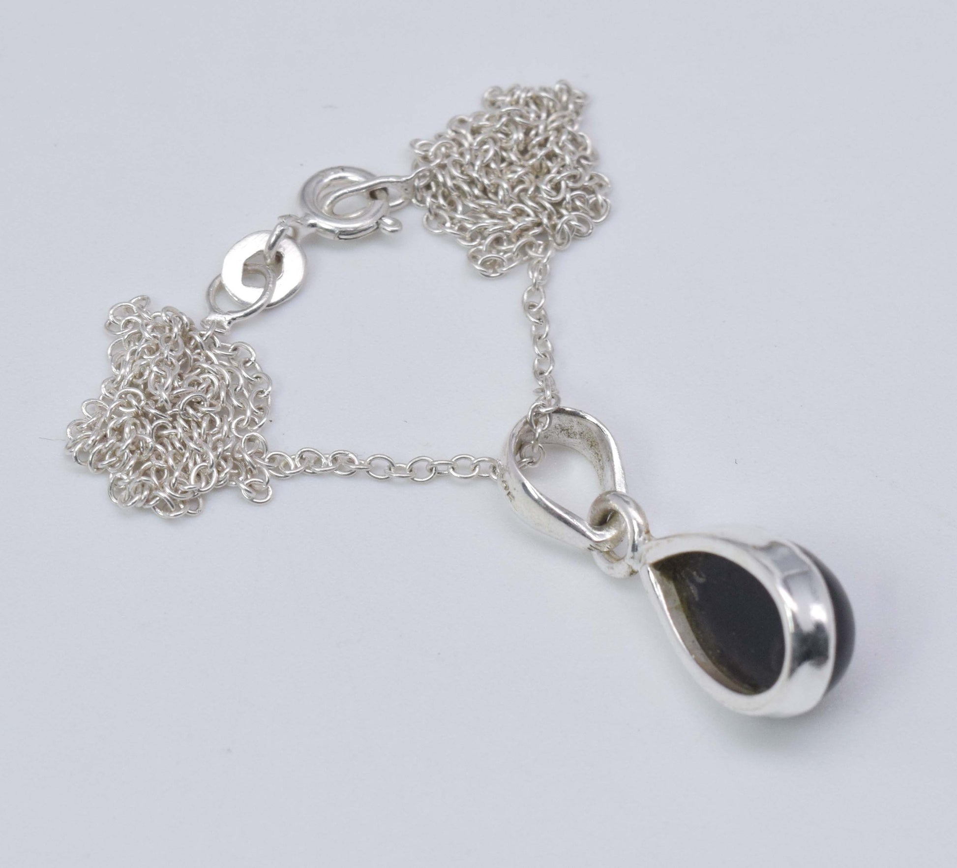925 Solid Sterling Silver Black Onyx Chain Pendant-19 Inch