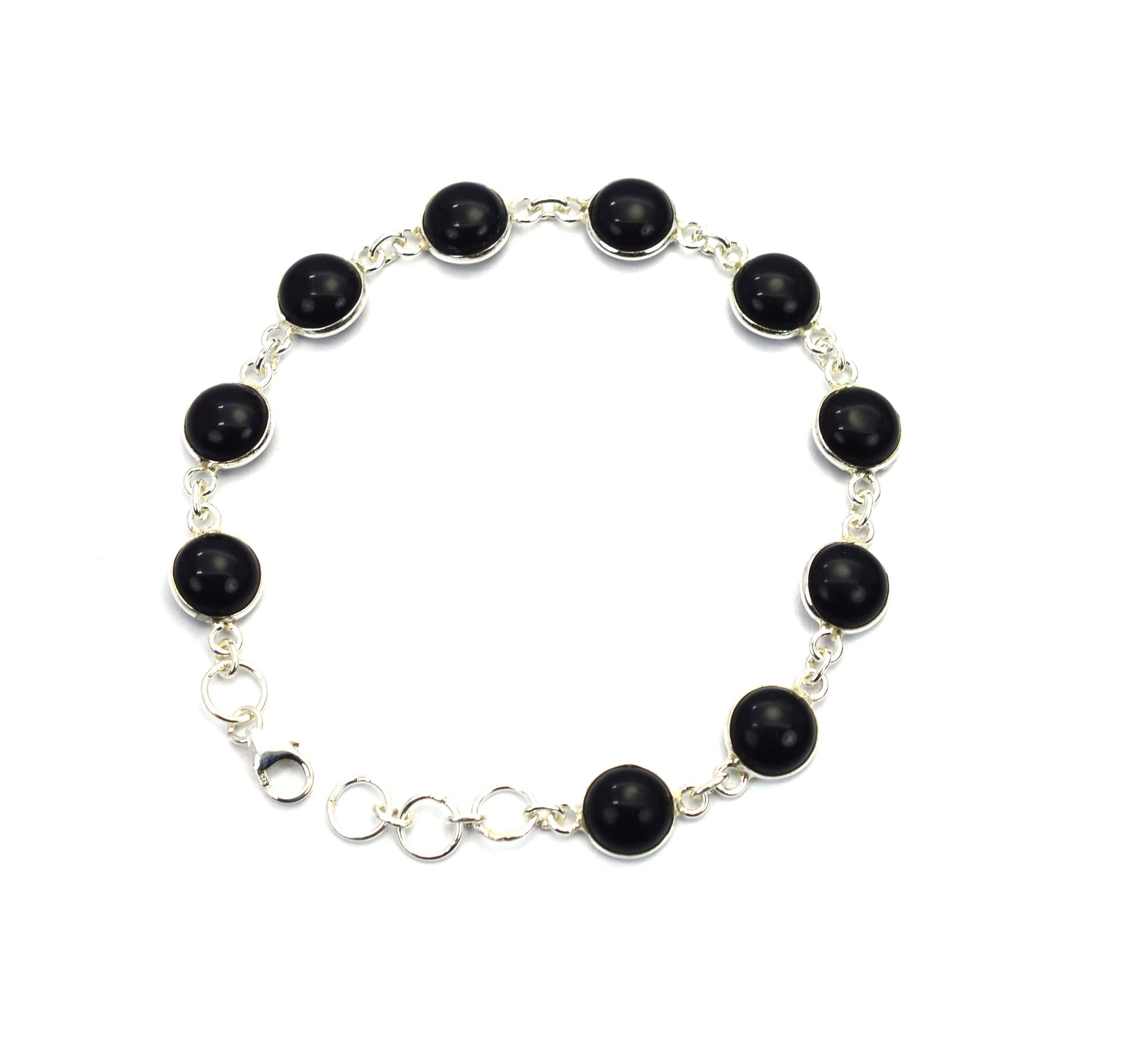 925 SOLID STERLING SILVER BLACK ONYX HANDMADE BRACELET - 7.6 INCH