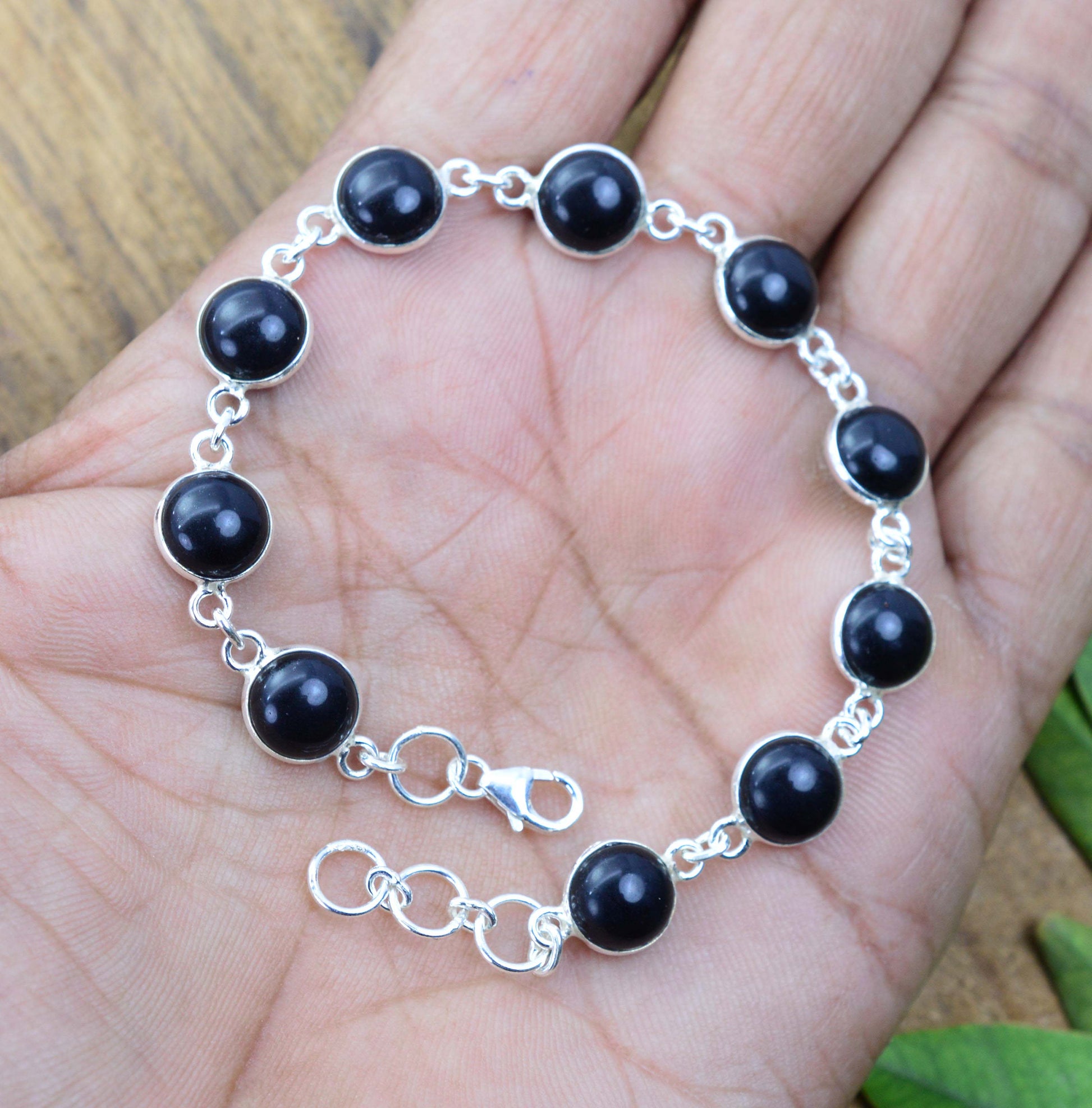 925 SOLID STERLING SILVER BLACK ONYX HANDMADE BRACELET -7.7 INCH