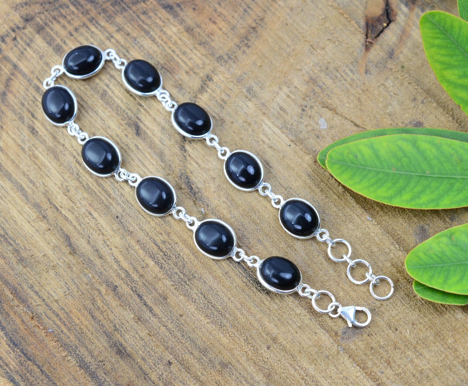 925 SOLID STERLING SILVER BLACK ONYX HANDMADE BRACELET -8.2 INCH