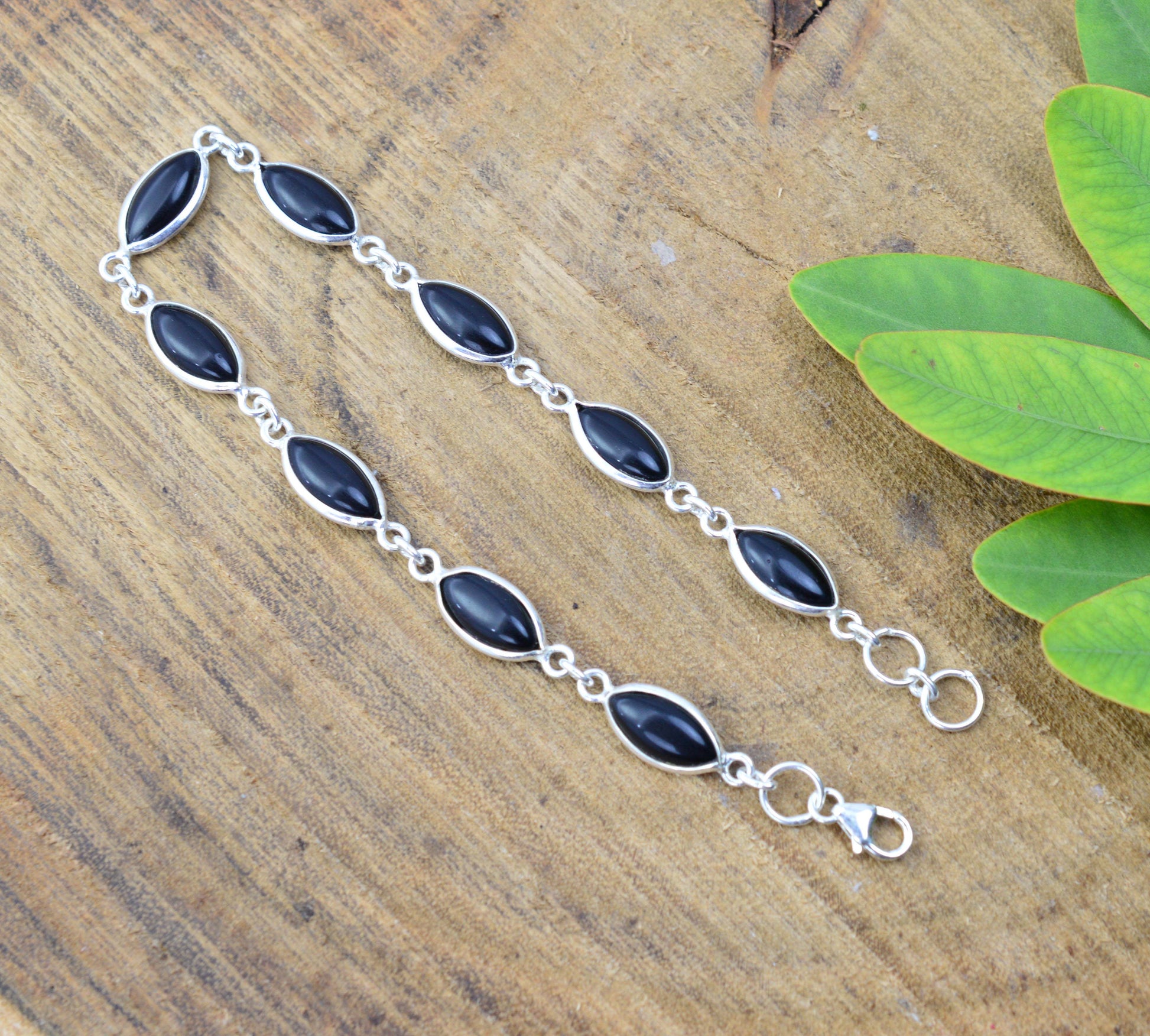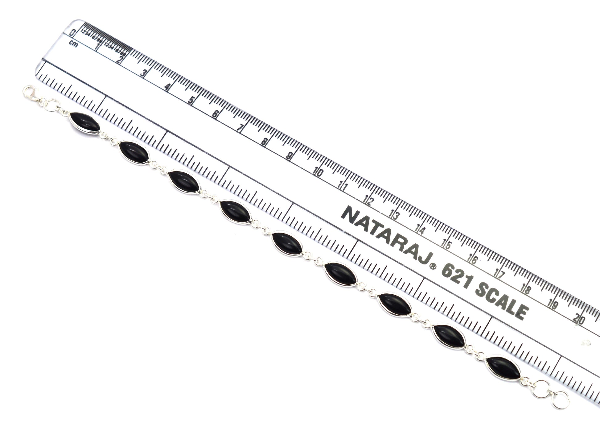 925 SOLID STERLING SILVER BLACK ONYX HANDMADE BRACELET -8.3 INCH