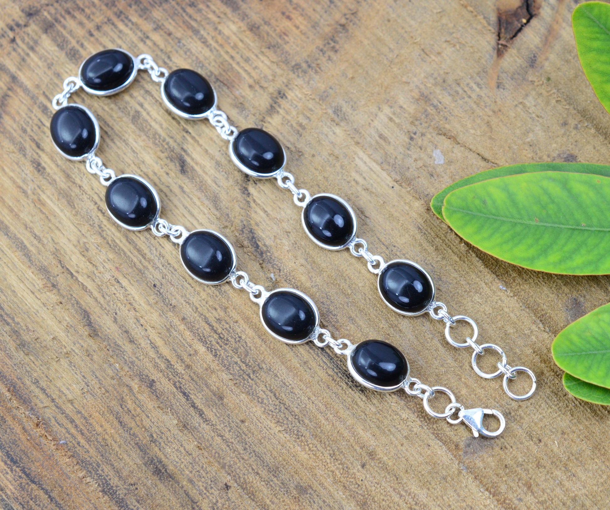 925 SOLID STERLING SILVER BLACK ONYX HANDMADE BRACELET - 8 INCH