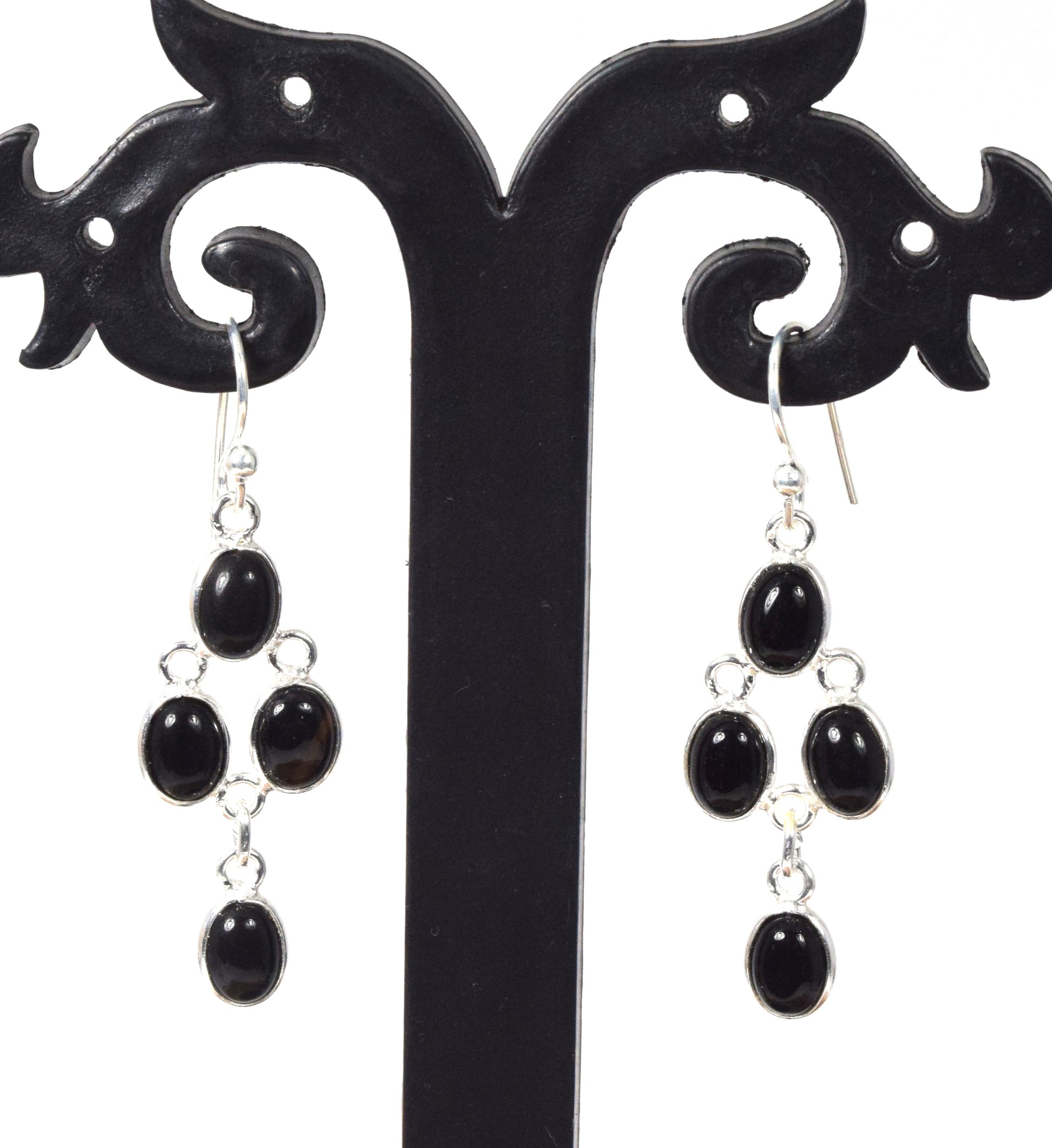925 Solid Sterling Silver Black Onyx Hook Earring - 1.7 Inch