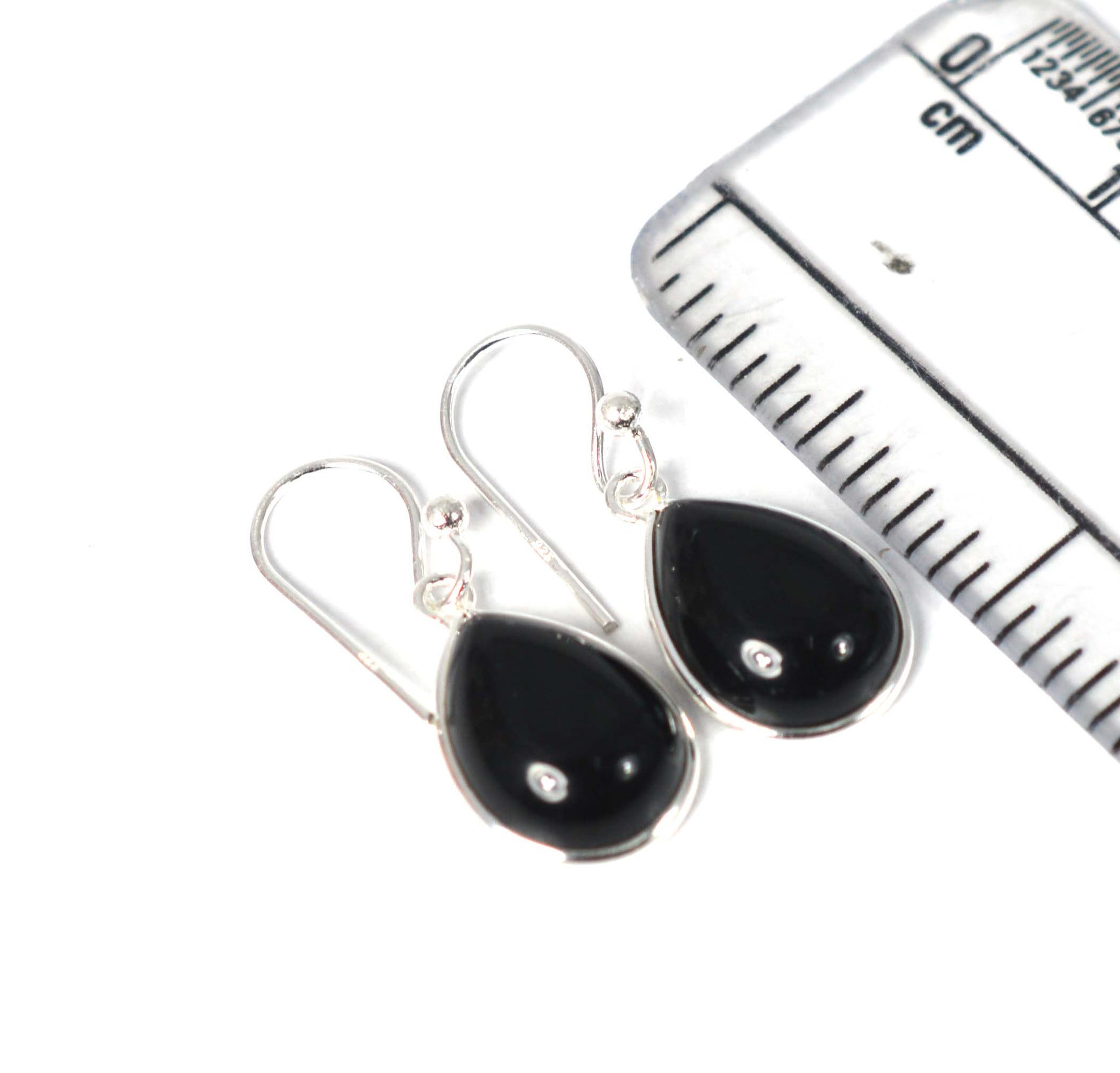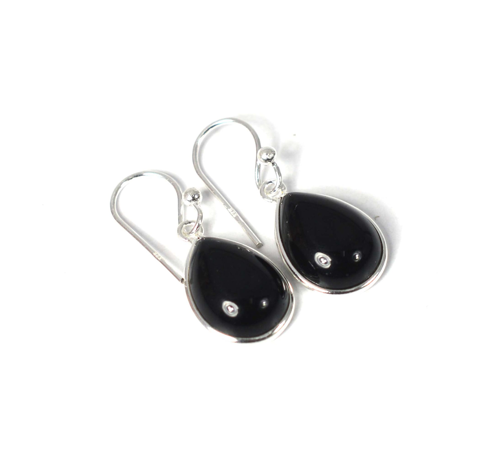 925 SOLID STERLING SILVER BLACK ONYX HOOK EARRING-1 INCH