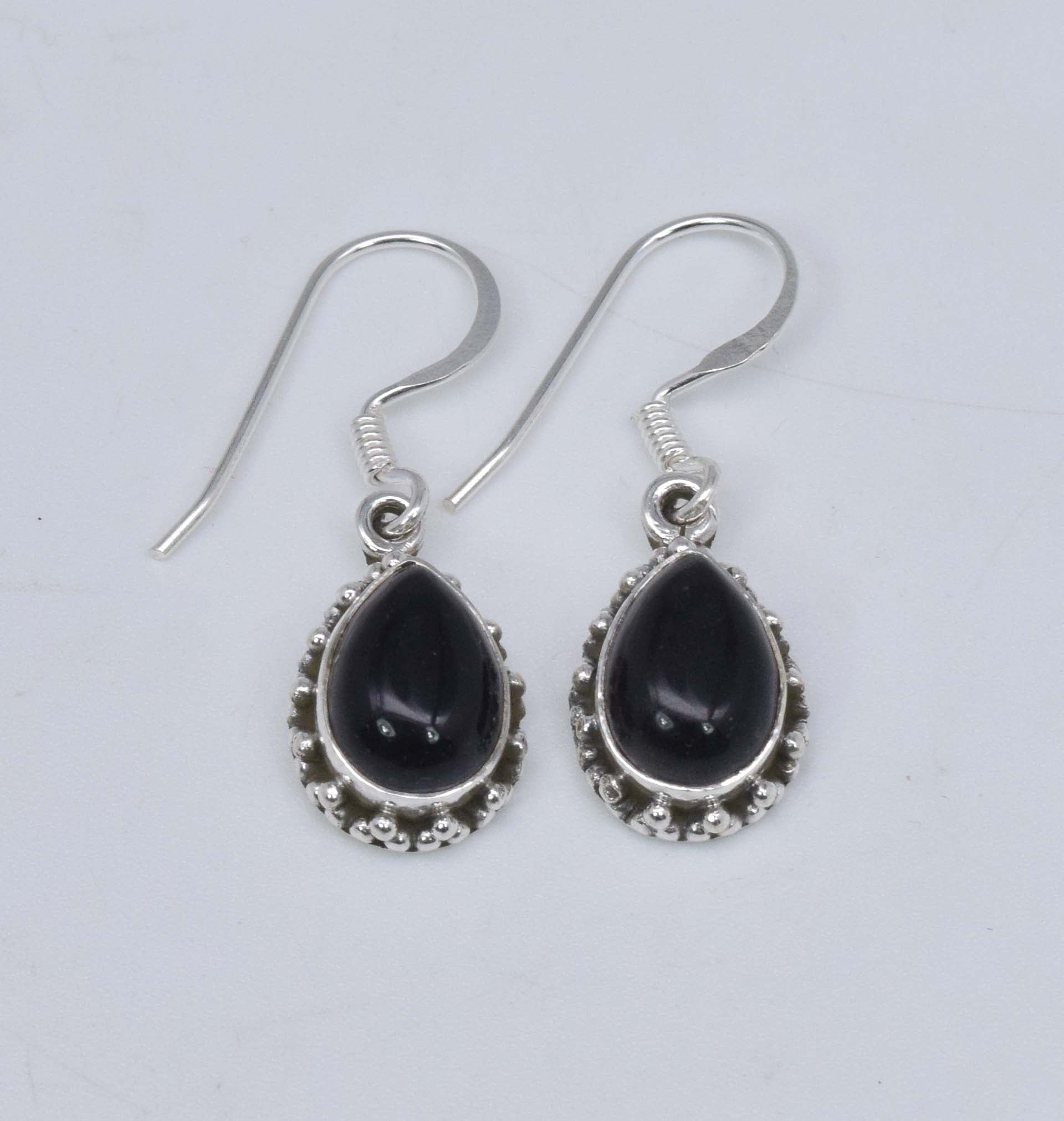 925 Solid Sterling Silver Black Onyx Hook Earring-1 Inch