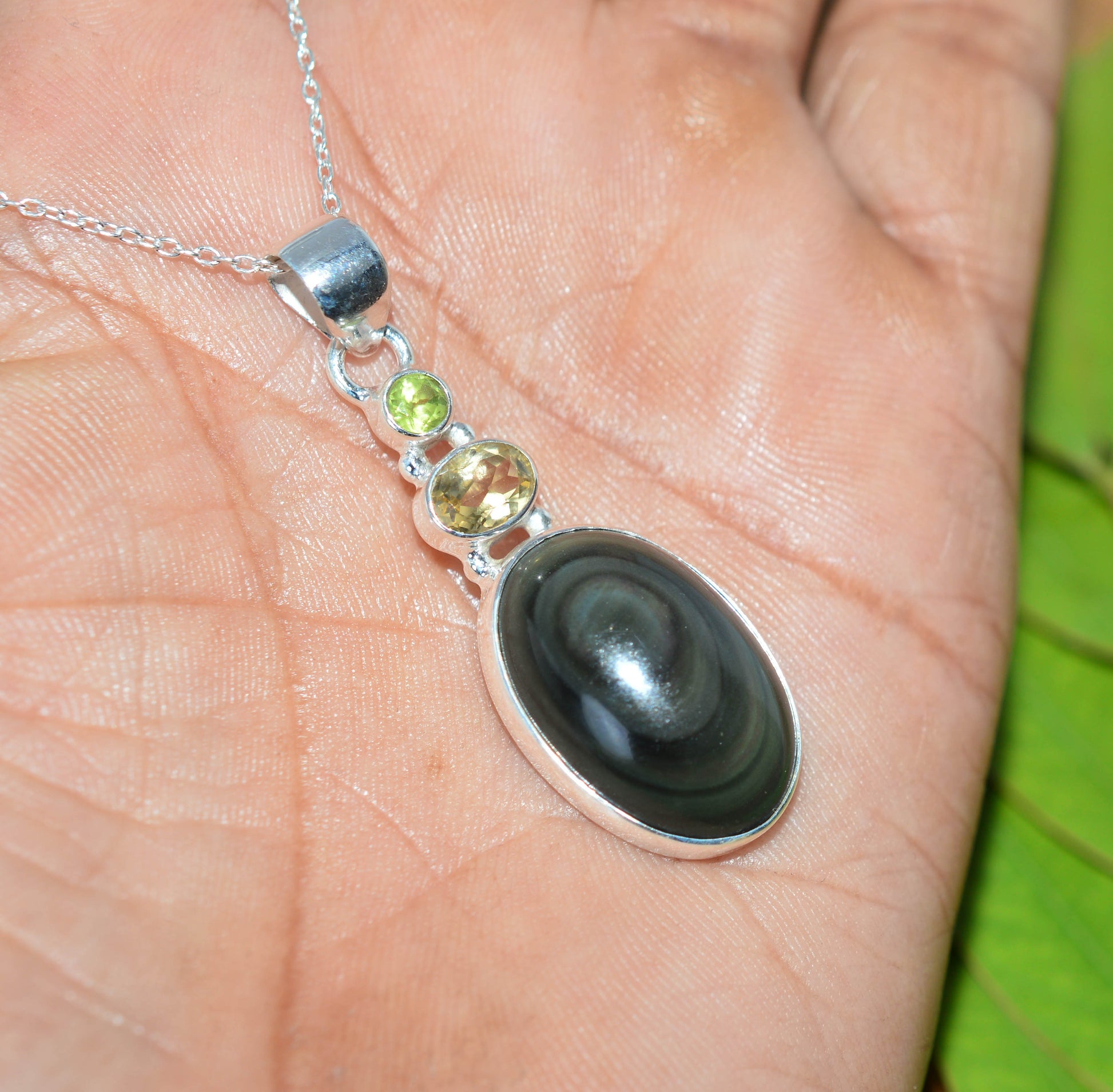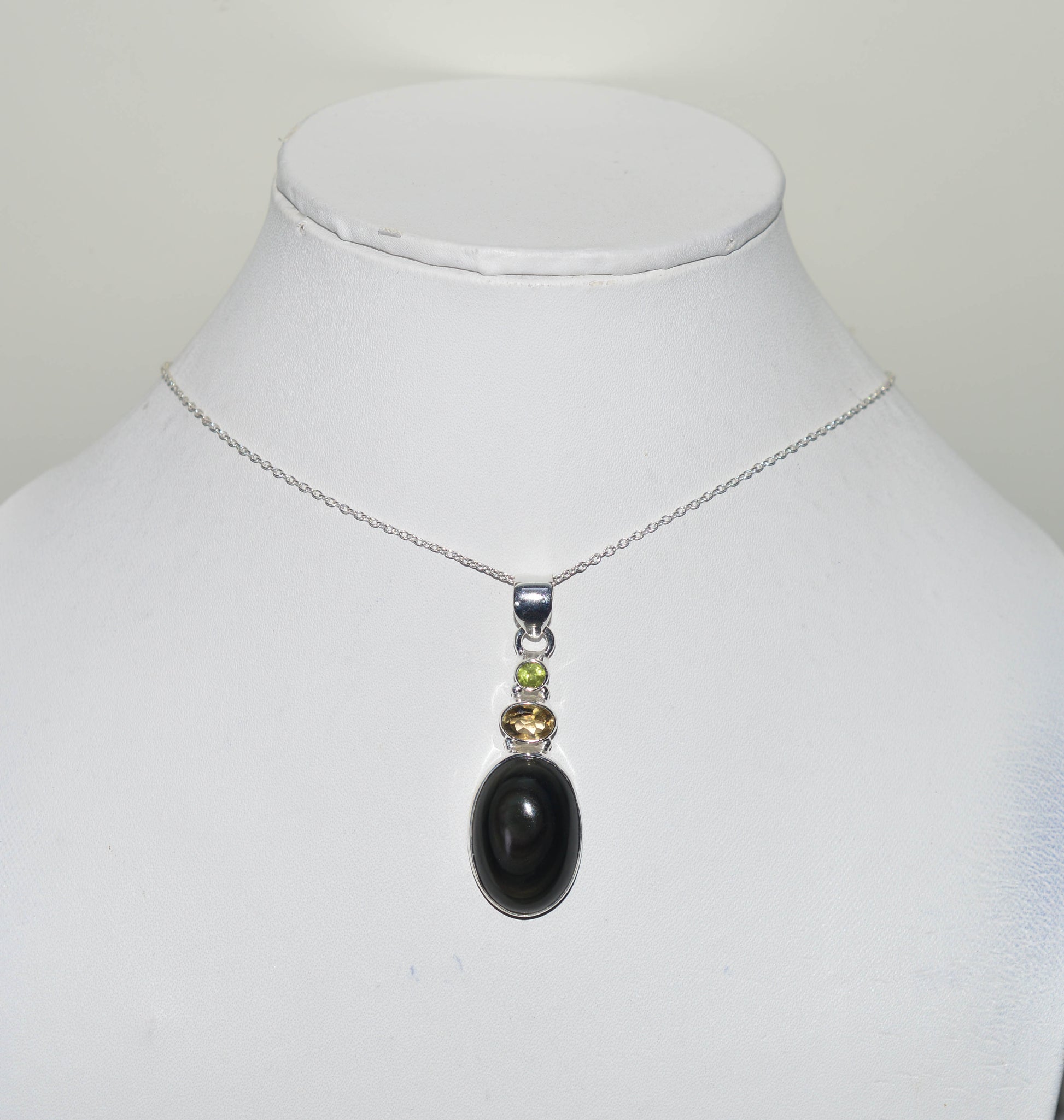 925 SOLID STERLING SILVER BLACK ONYX MIX STONE CHAIN PENDANT -19.7 INCH