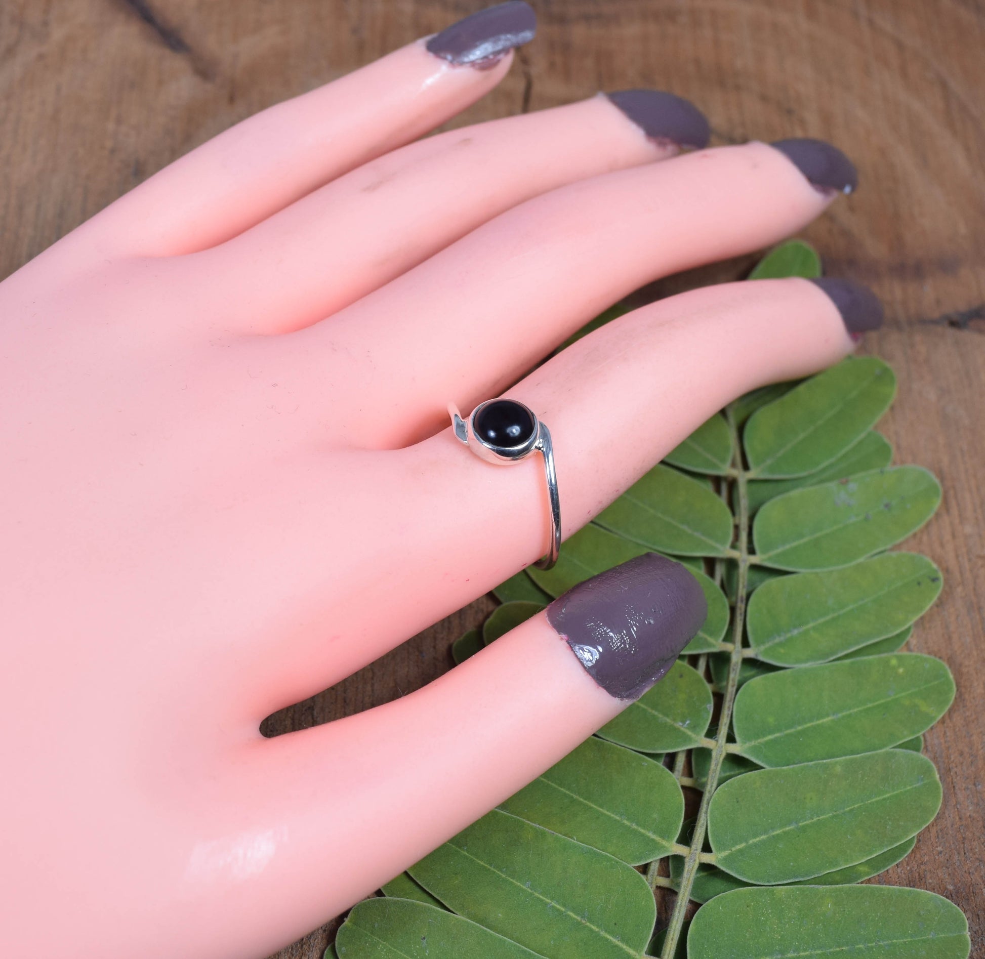 925 Solid Sterling Silver Black Onyx Ring -8 us