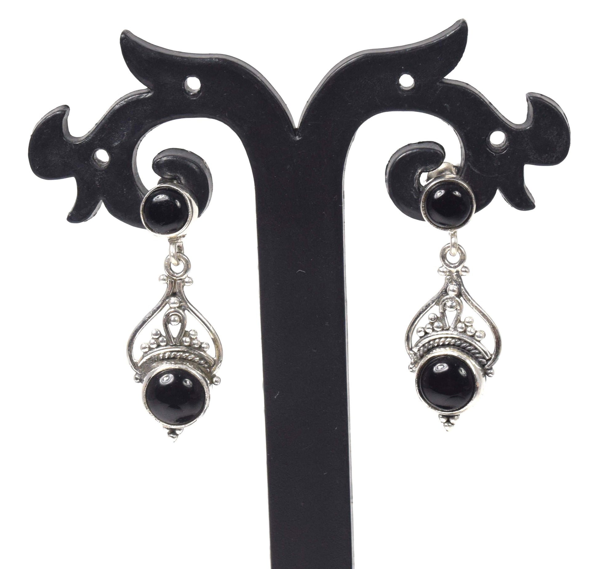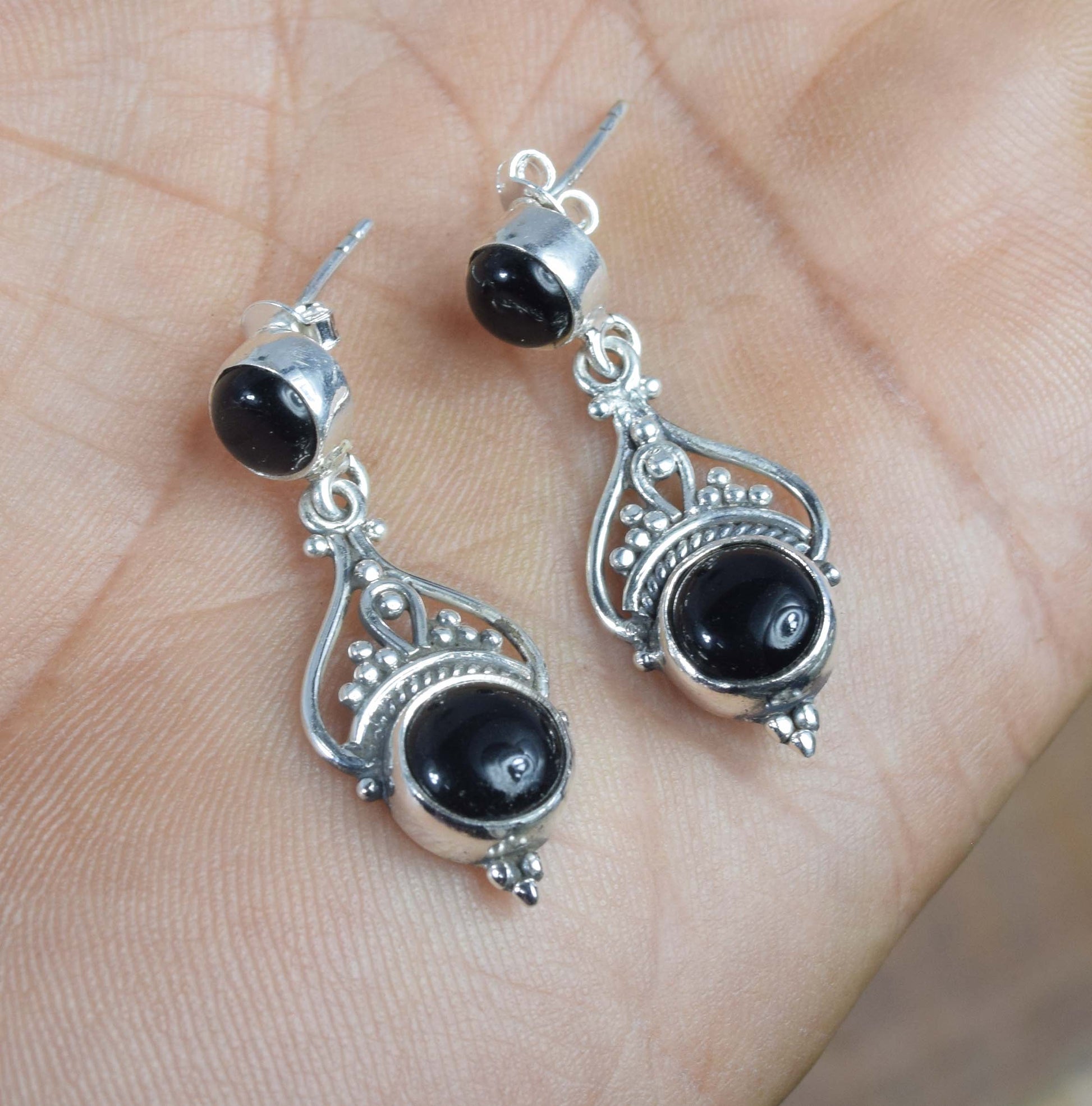 925 Solid Sterling Silver Black Onyx Stud Earring -1.5 inch