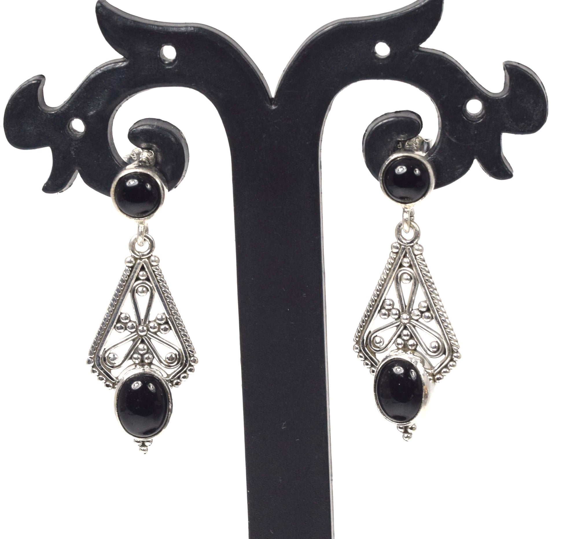 925 Solid Sterling Silver Black Onyx Stud Earring -1.6 inch