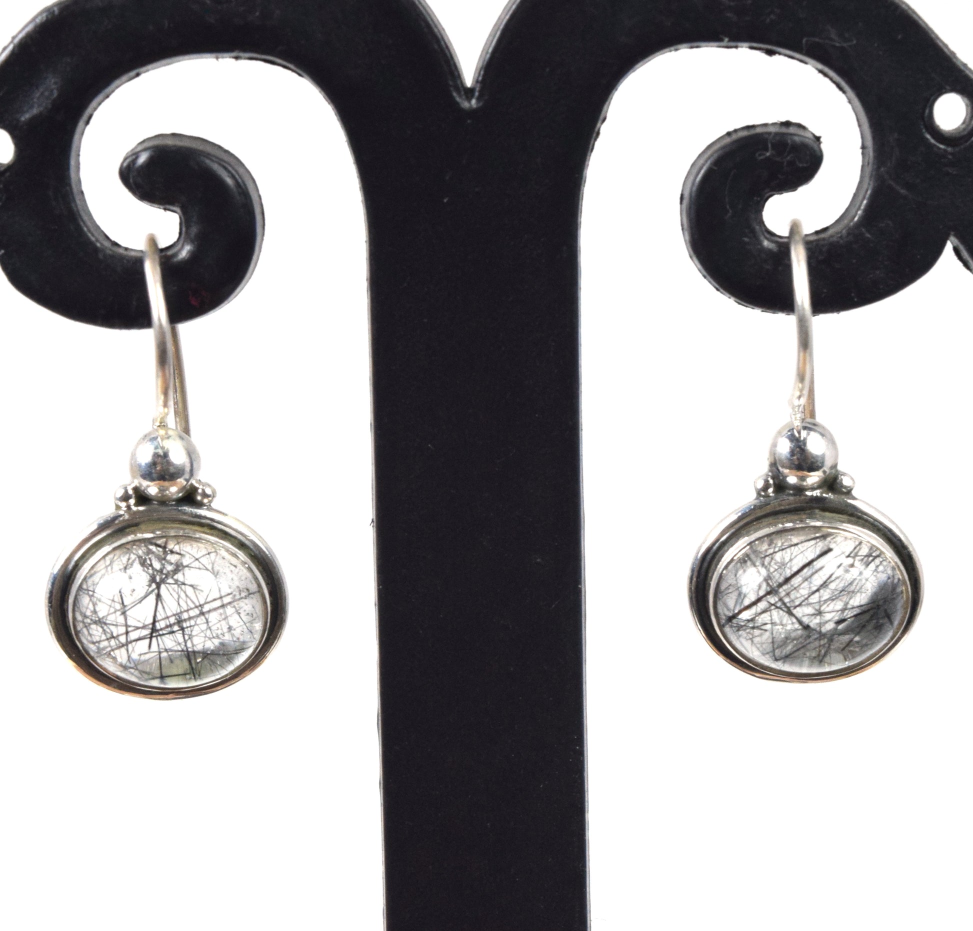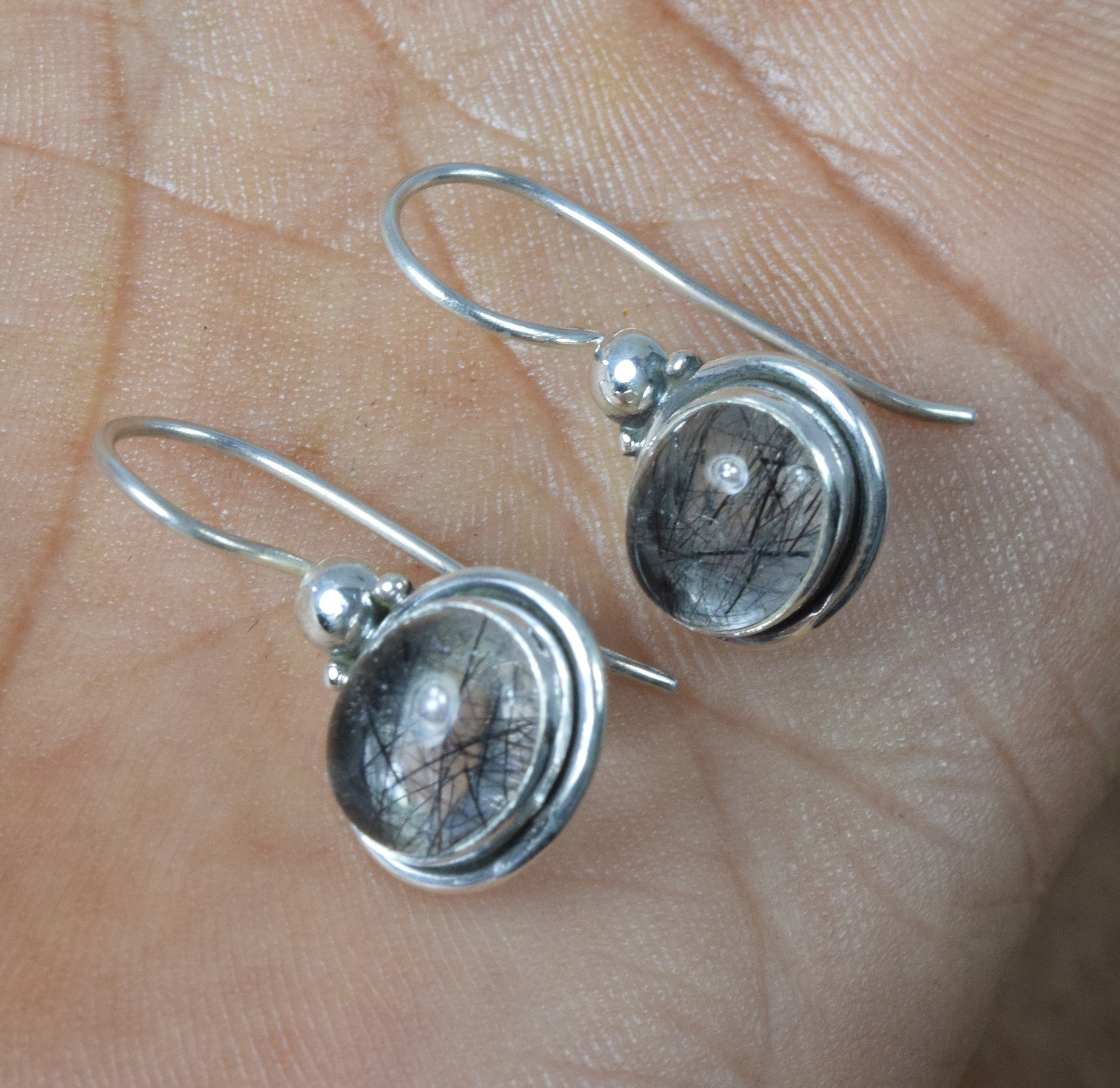 925 Solid Sterling Silver Black Rutile Hook Earring - 1 Inch