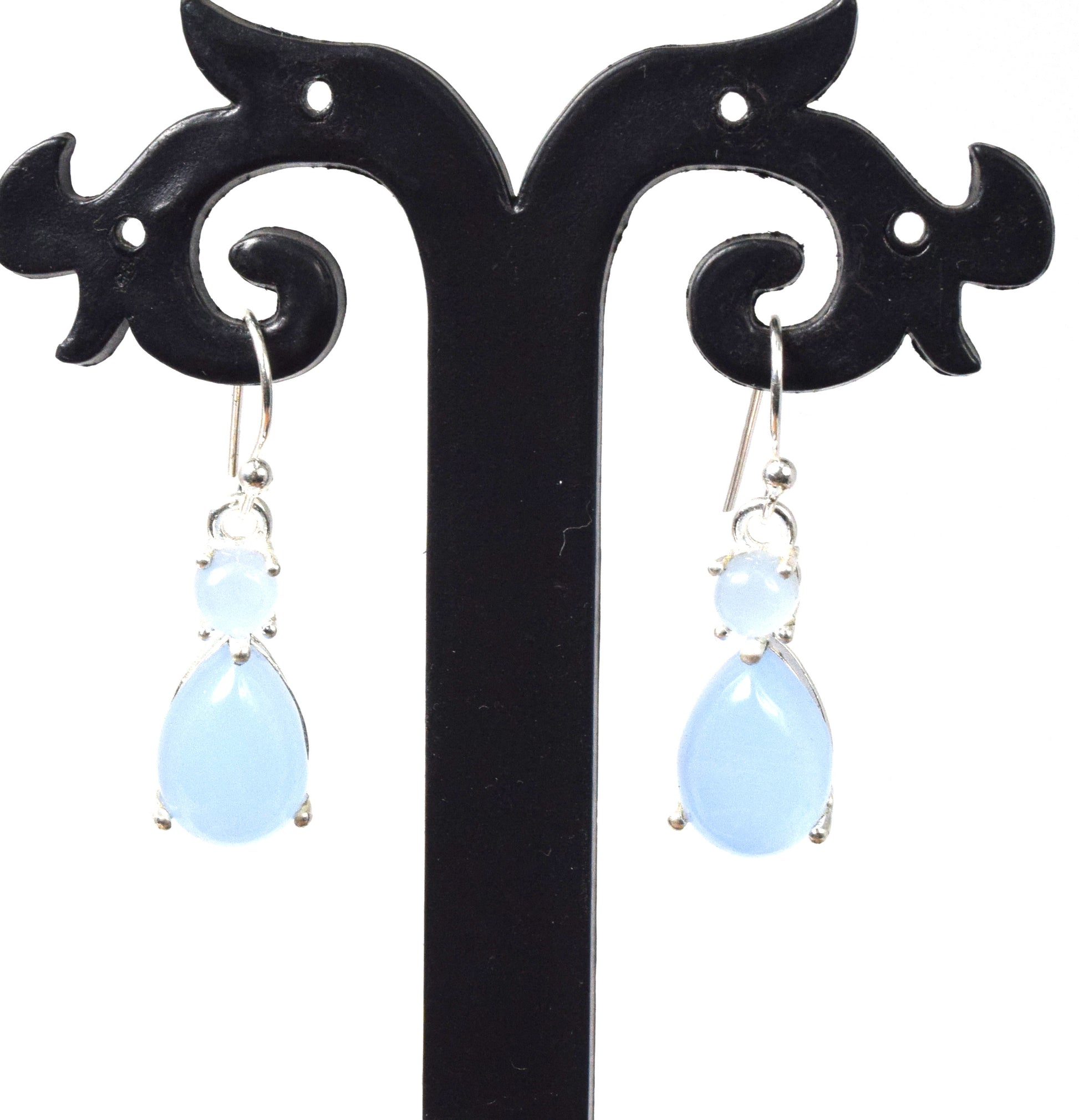 925 Solid Sterling Silver Blue Chalcedony Hook Earring - 1.2 Inch