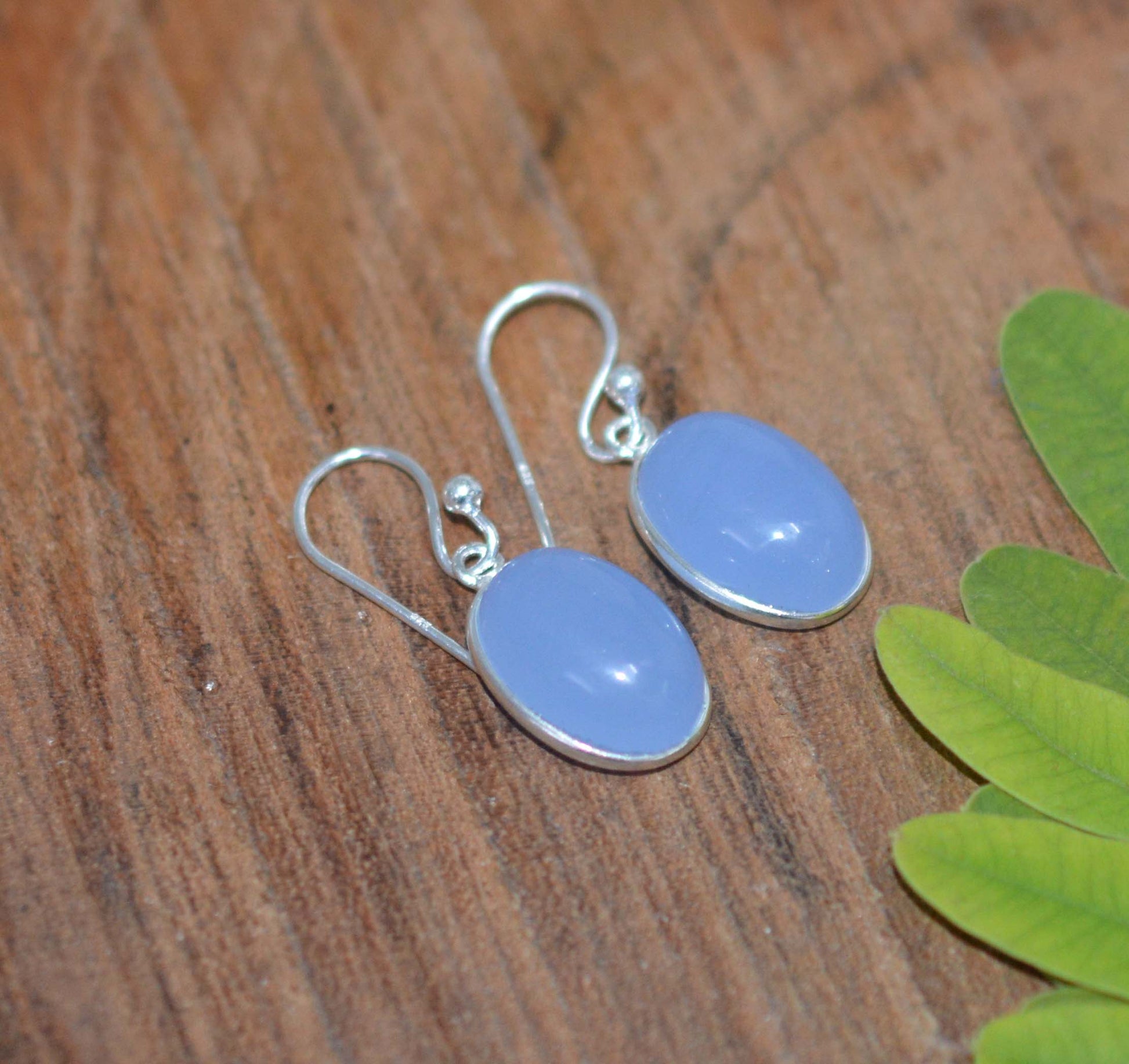925 SOLID STERLING SILVER BLUE CHALCEDONY HOOK EARRING-1 INCH