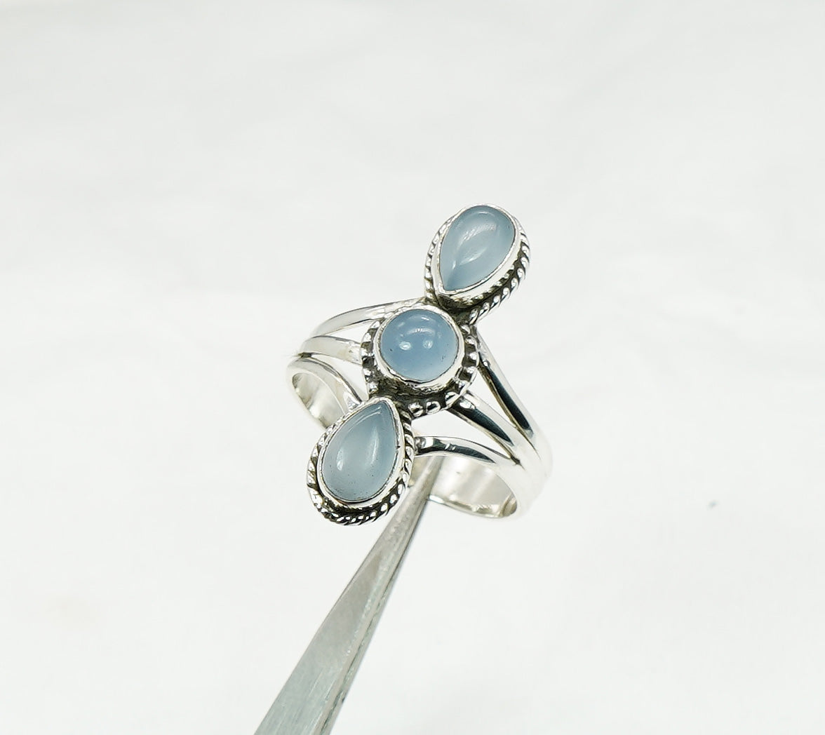 925 Solid Sterling Silver Blue Chalcedony Ring - 9 US