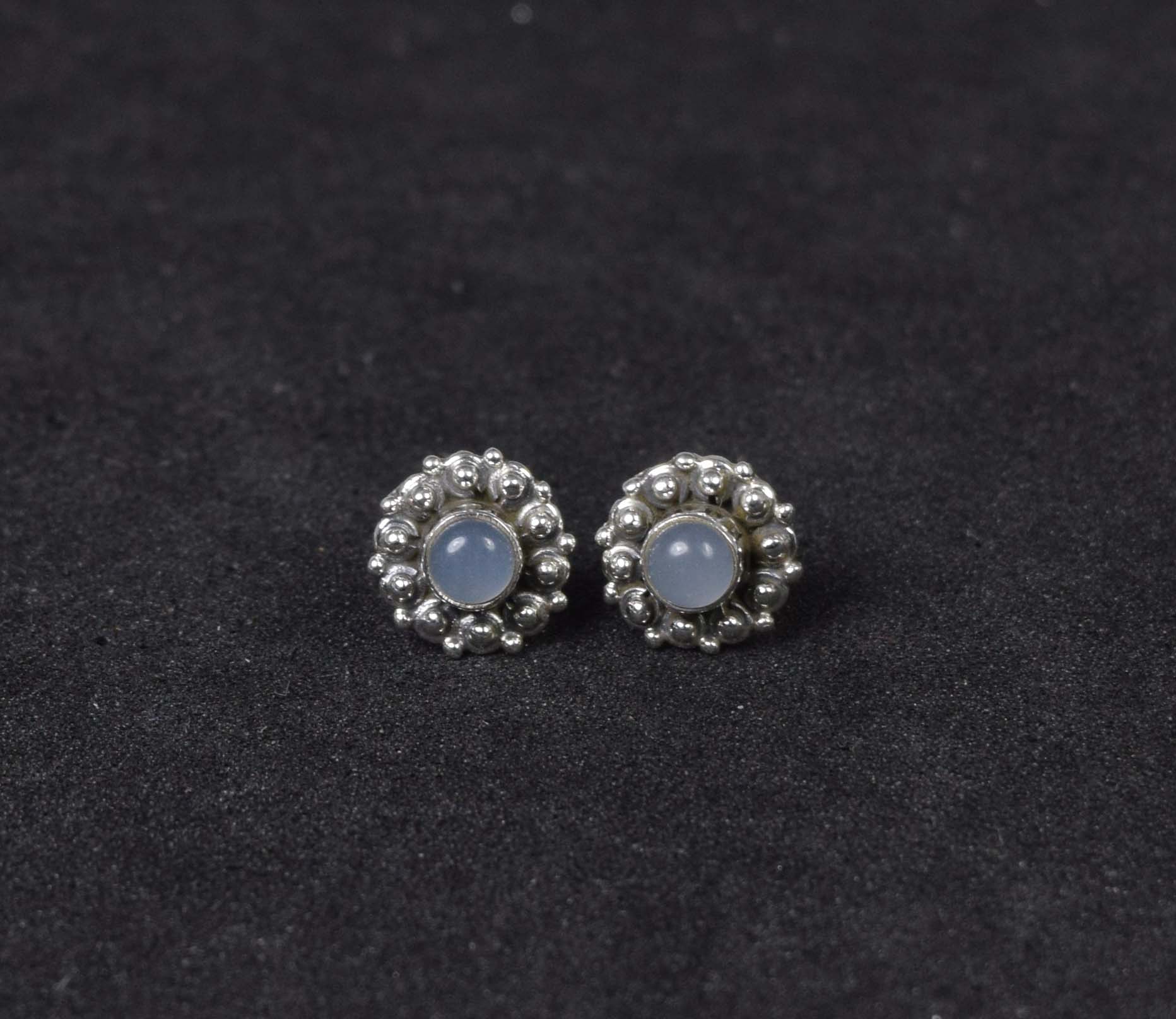 925 Solid Sterling Silver Blue Chalcedony Stud Earring