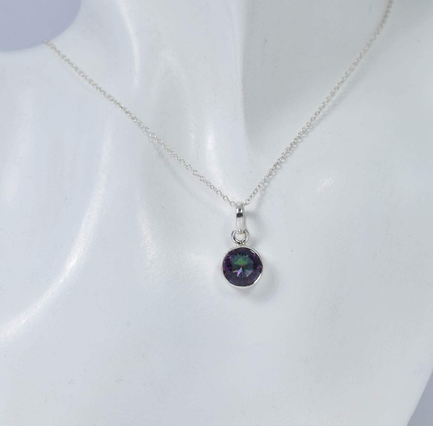 925 Solid Sterling Silver Faceted Mystic Topaz Pendant - 1.8 Grams
