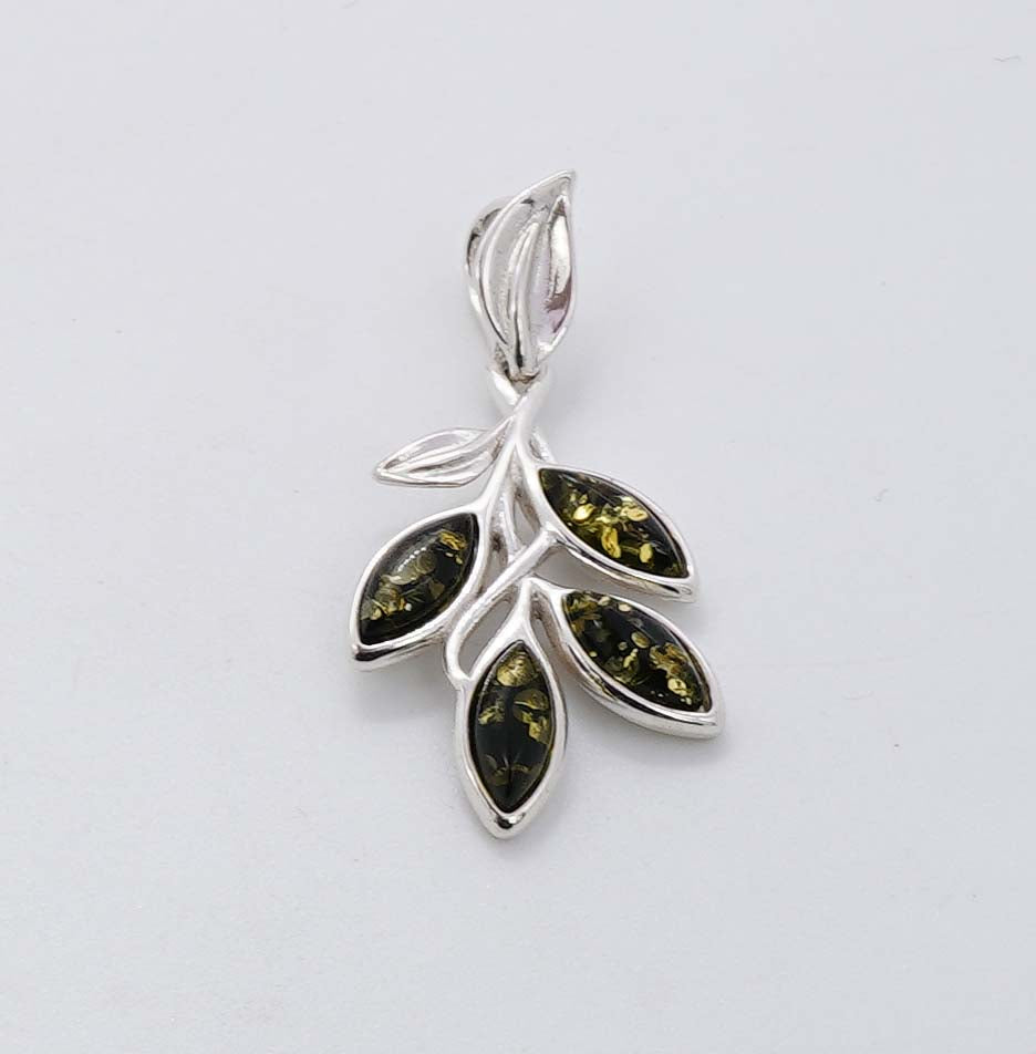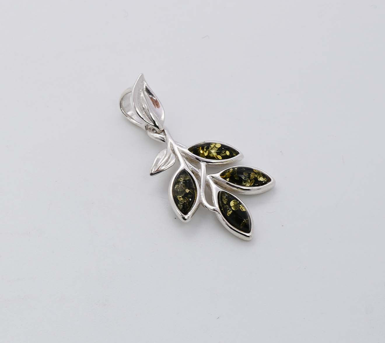 925 Solid Sterling Silver Natural Green Baltic Amber Pendant - 3.4 Grams
