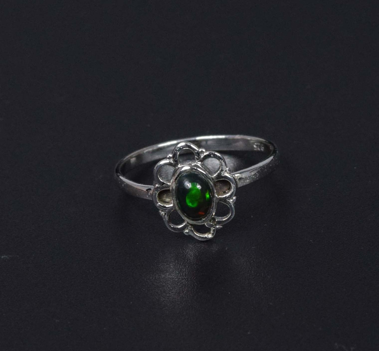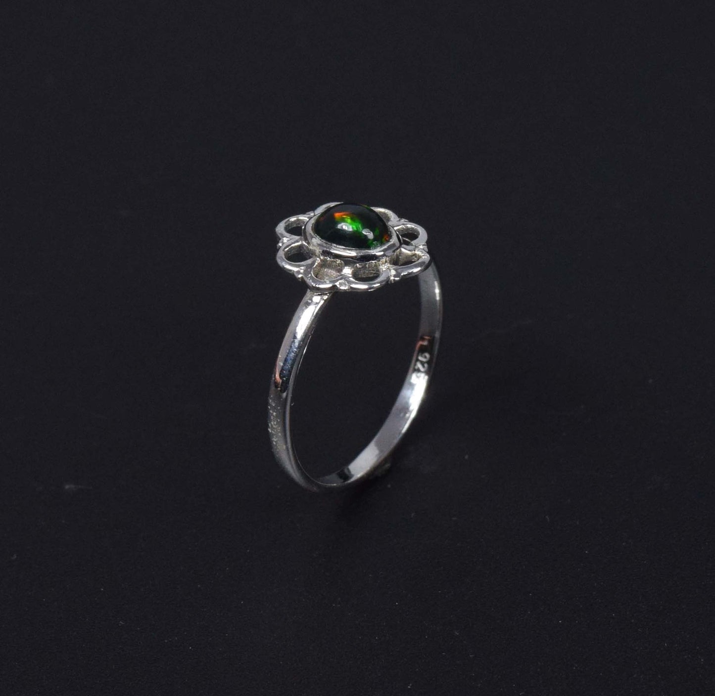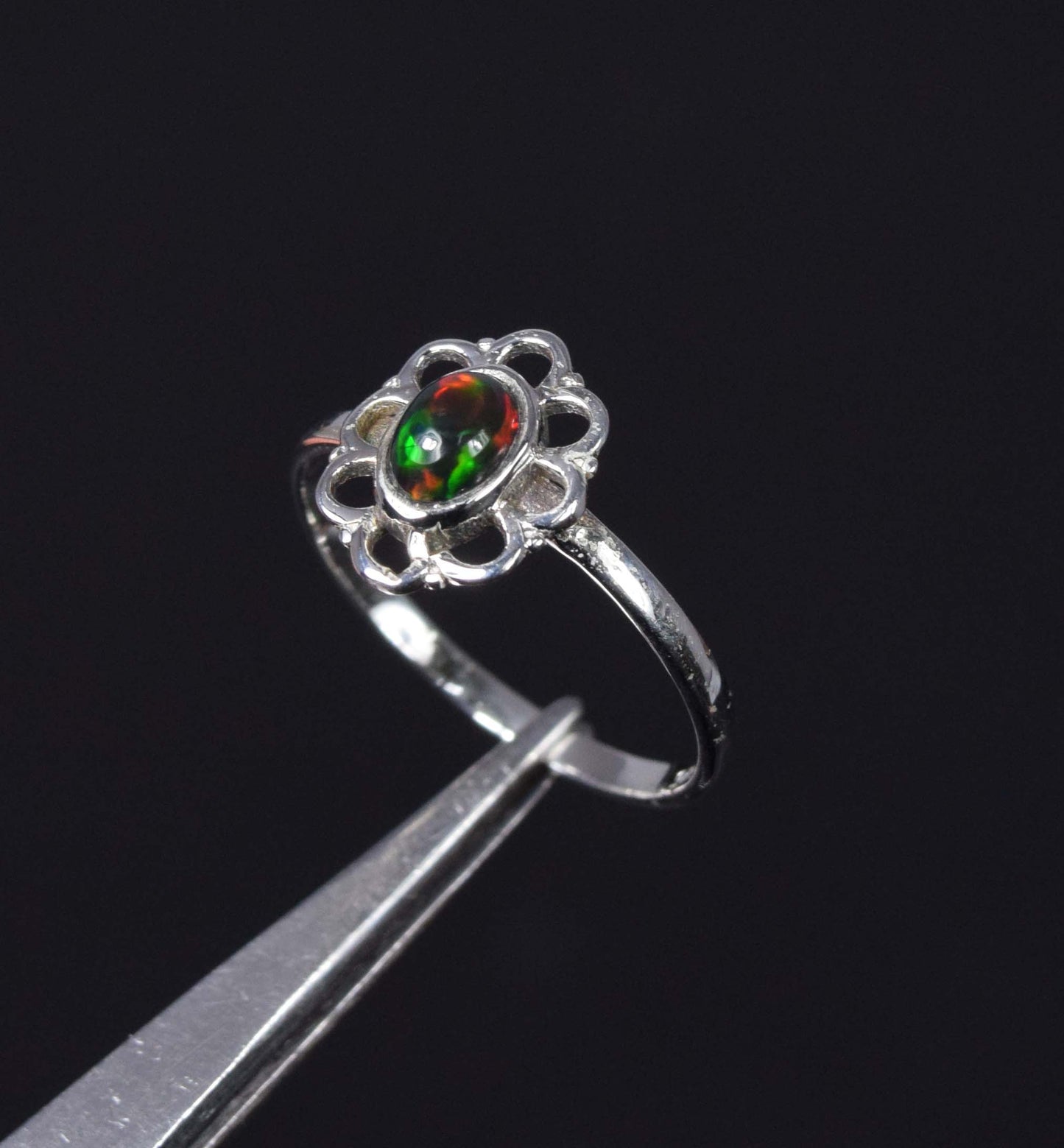 925 Solid Sterling Silver Natural Black Ethiopian Opal Flower Style Ring - 1.5 Grams