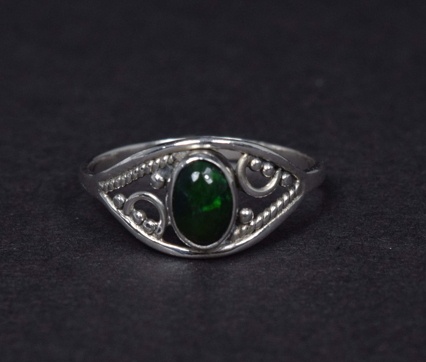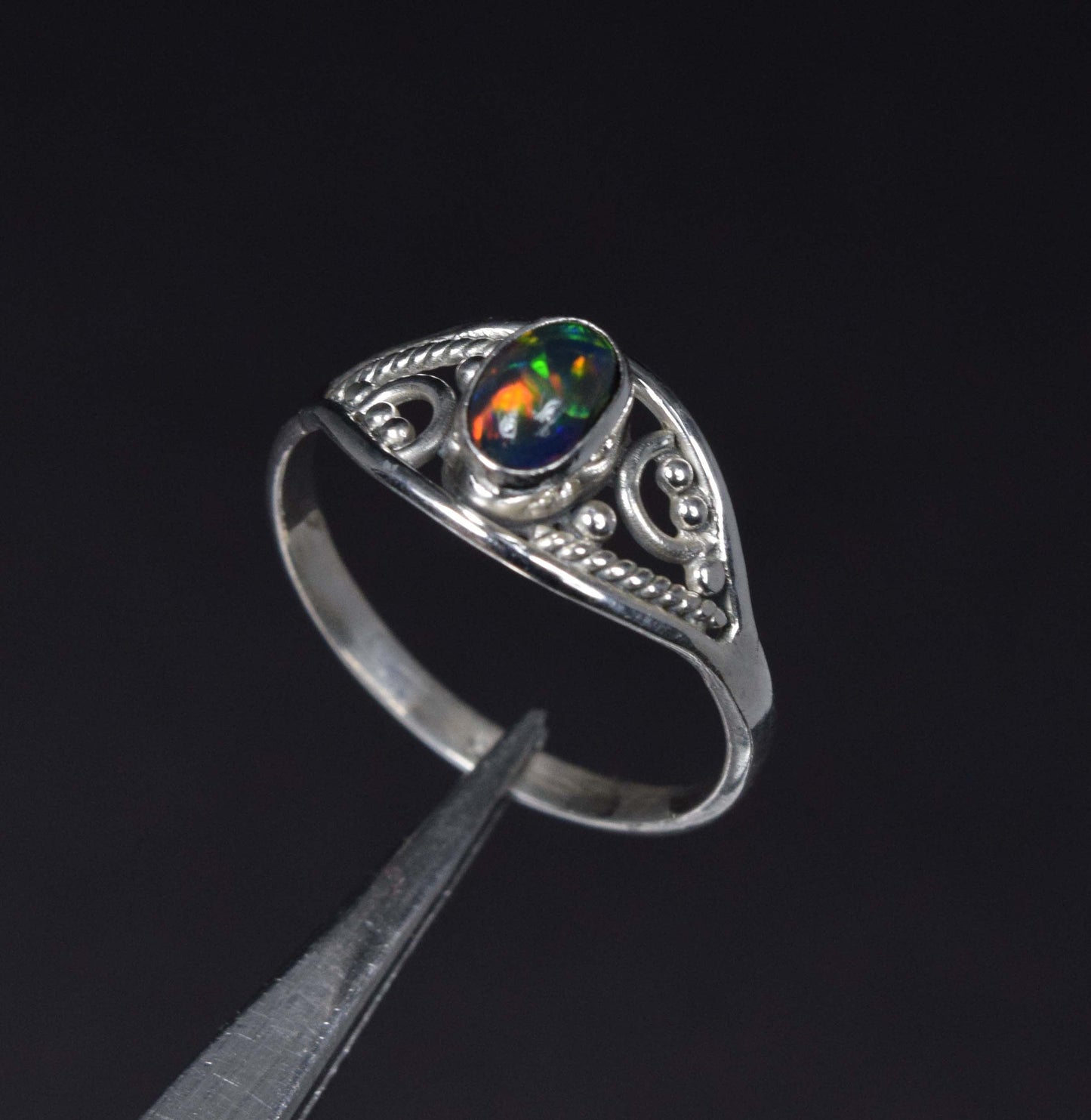 925 Solid Sterling Silver Natural Black Ethiopian Opal Plaster Ring - 1.7 Grams