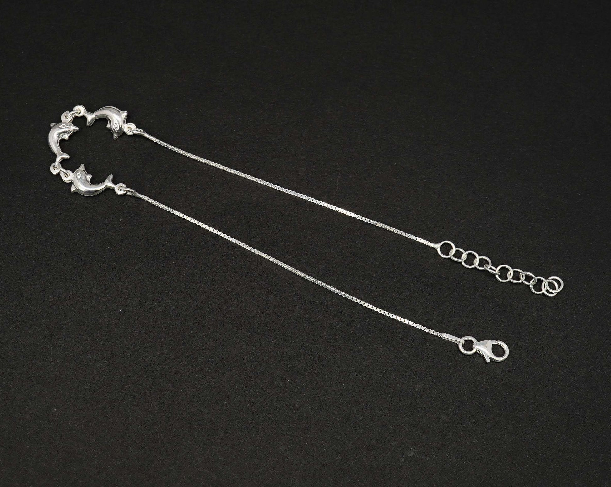 925 Solid Sterling Silver Plain Fish Style Anklet-10.2 Inch