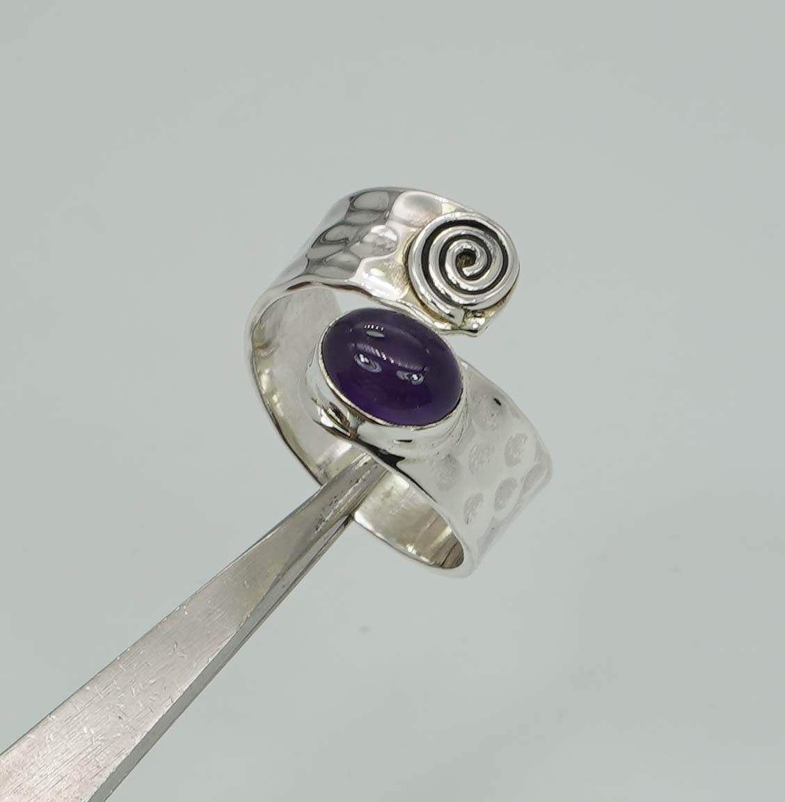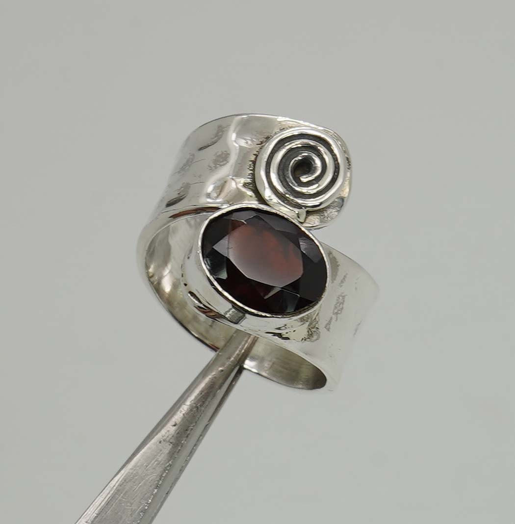 925 Sterling Silver Hammered Adjustable Ring - 7.8 Grams
