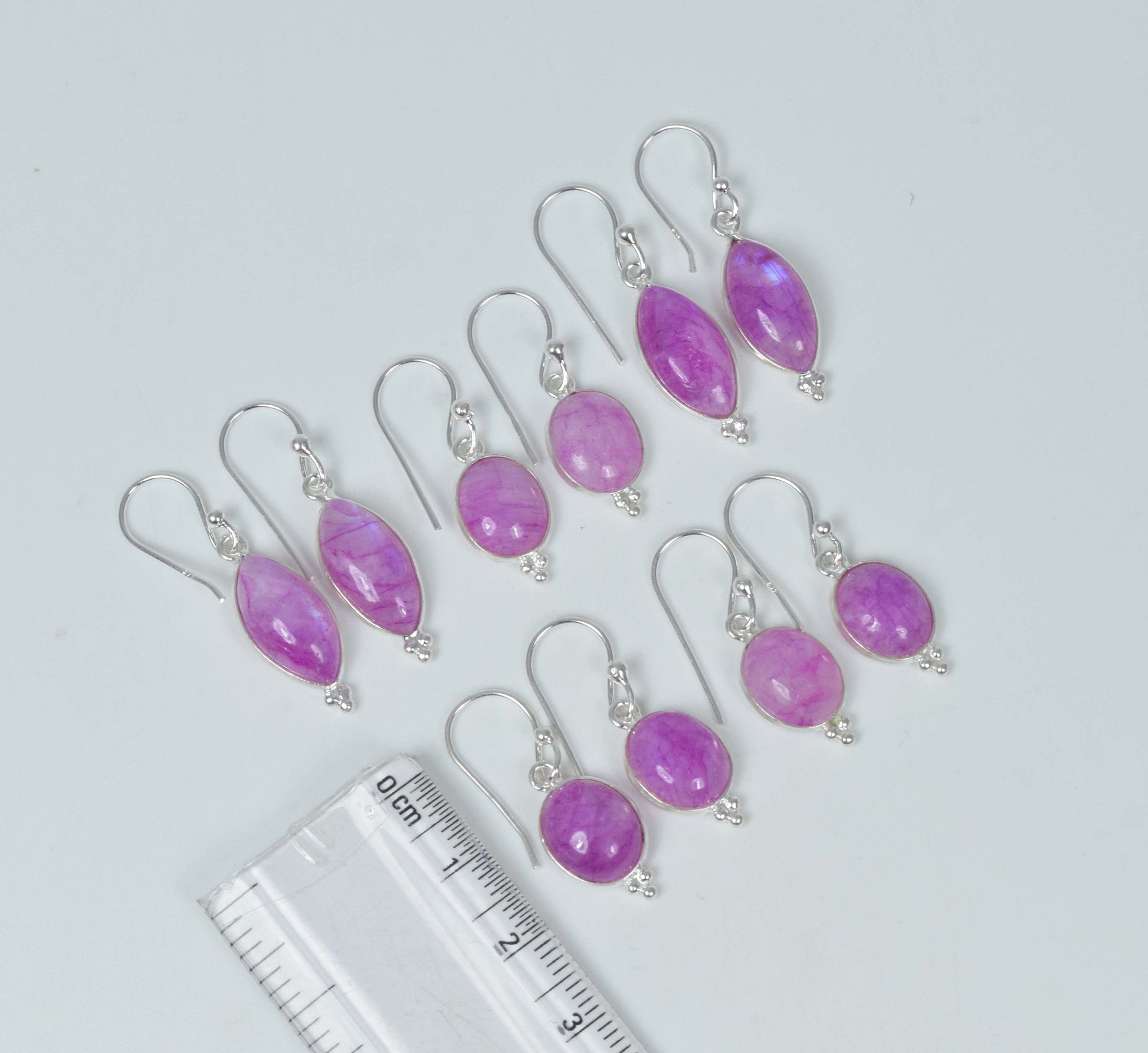 Wholesale 5PR 925 Sterling Silver Pink Rainbow Moonstone Hook Earring Lot