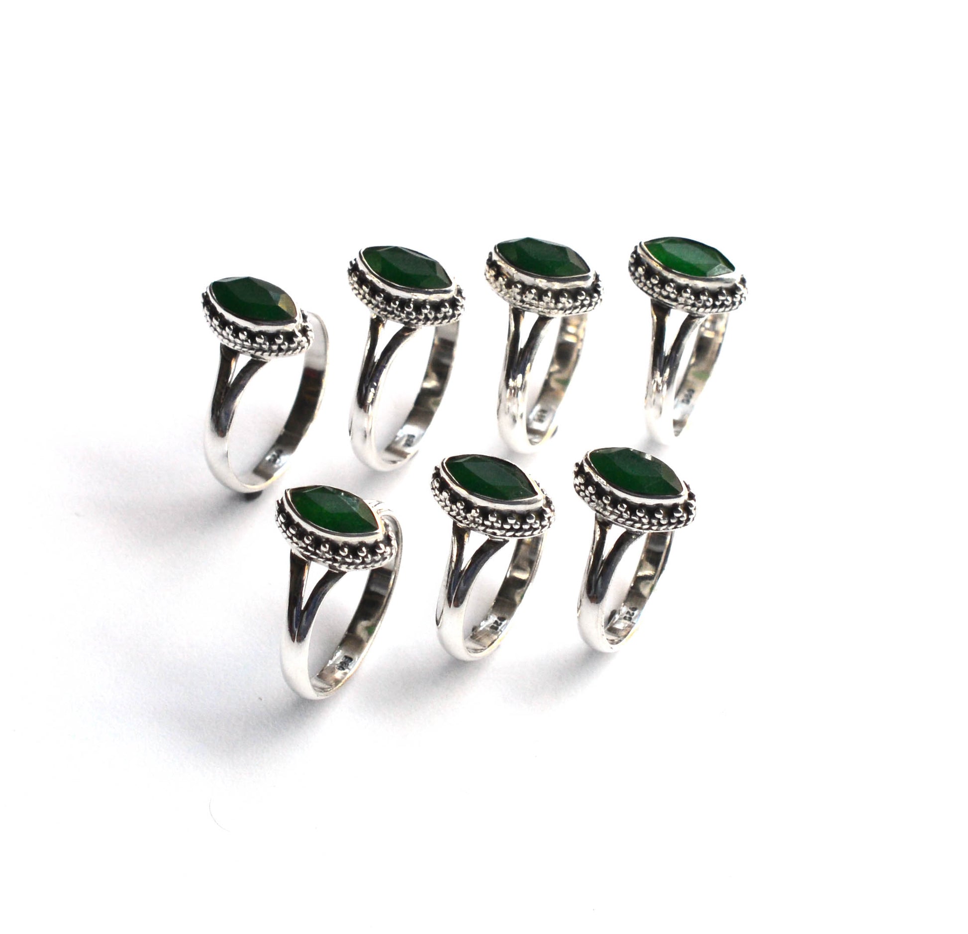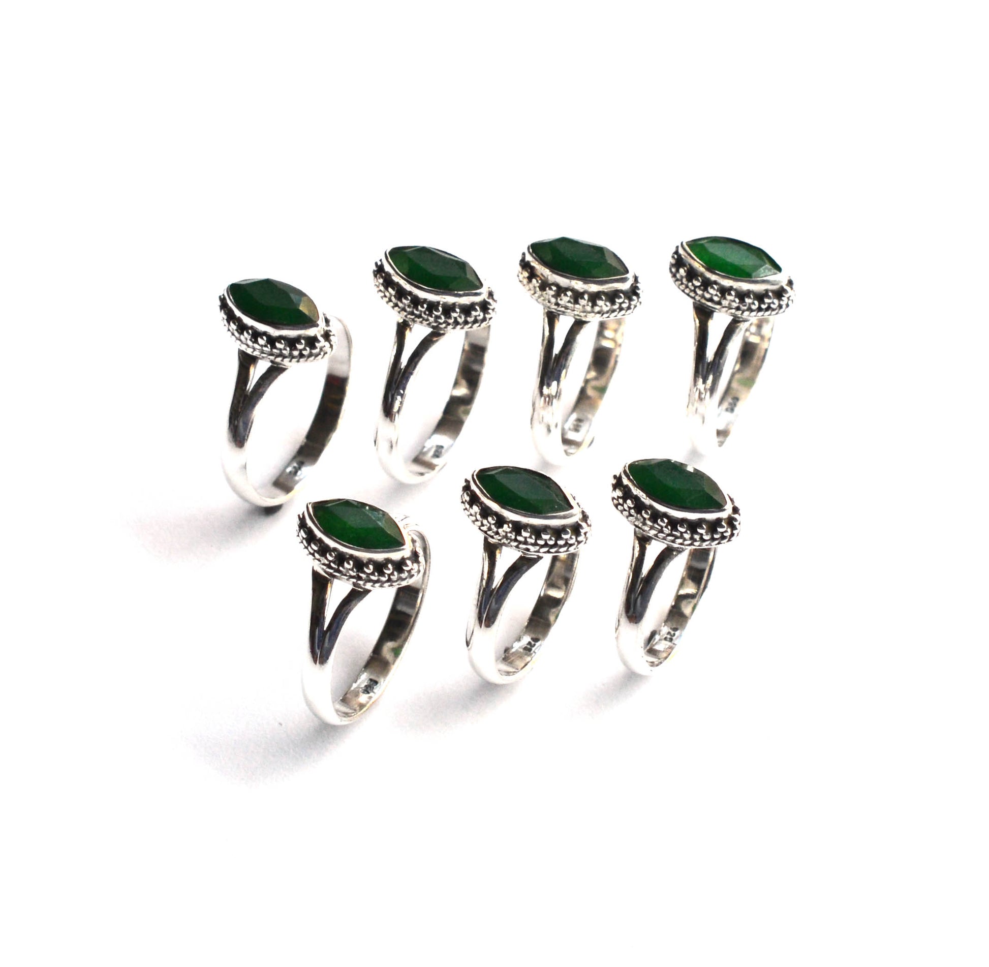 WHOLESALE 7PC 925 SOLID STERLING SILVER GREEN Simulated Emerald RING LOT