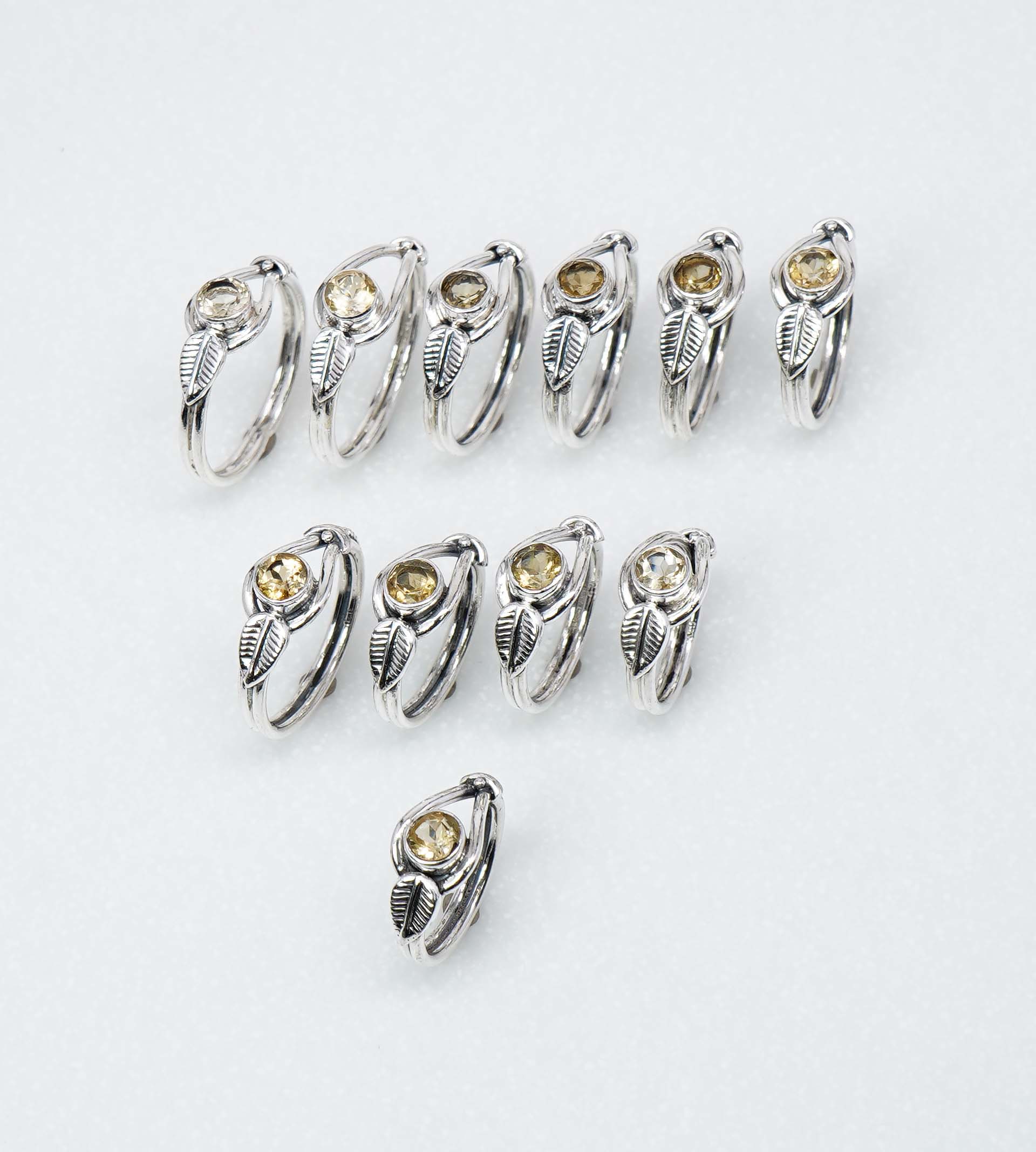 Wholesale 925 11PC Solid Sterling Silver Cut Yellow Citrine Ring Lot