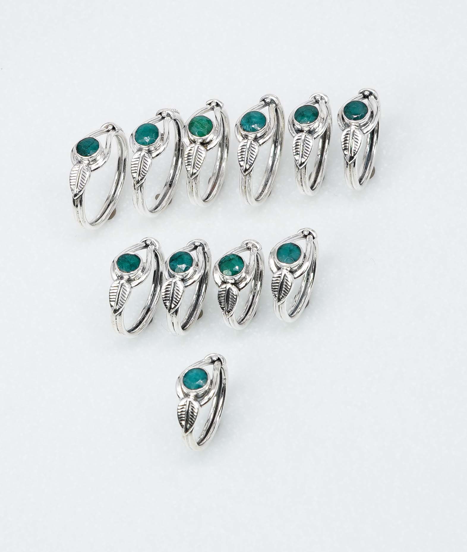 Wholesale 925 11PC Solid Sterling Silver Simulated Green Emerald Ring Lot