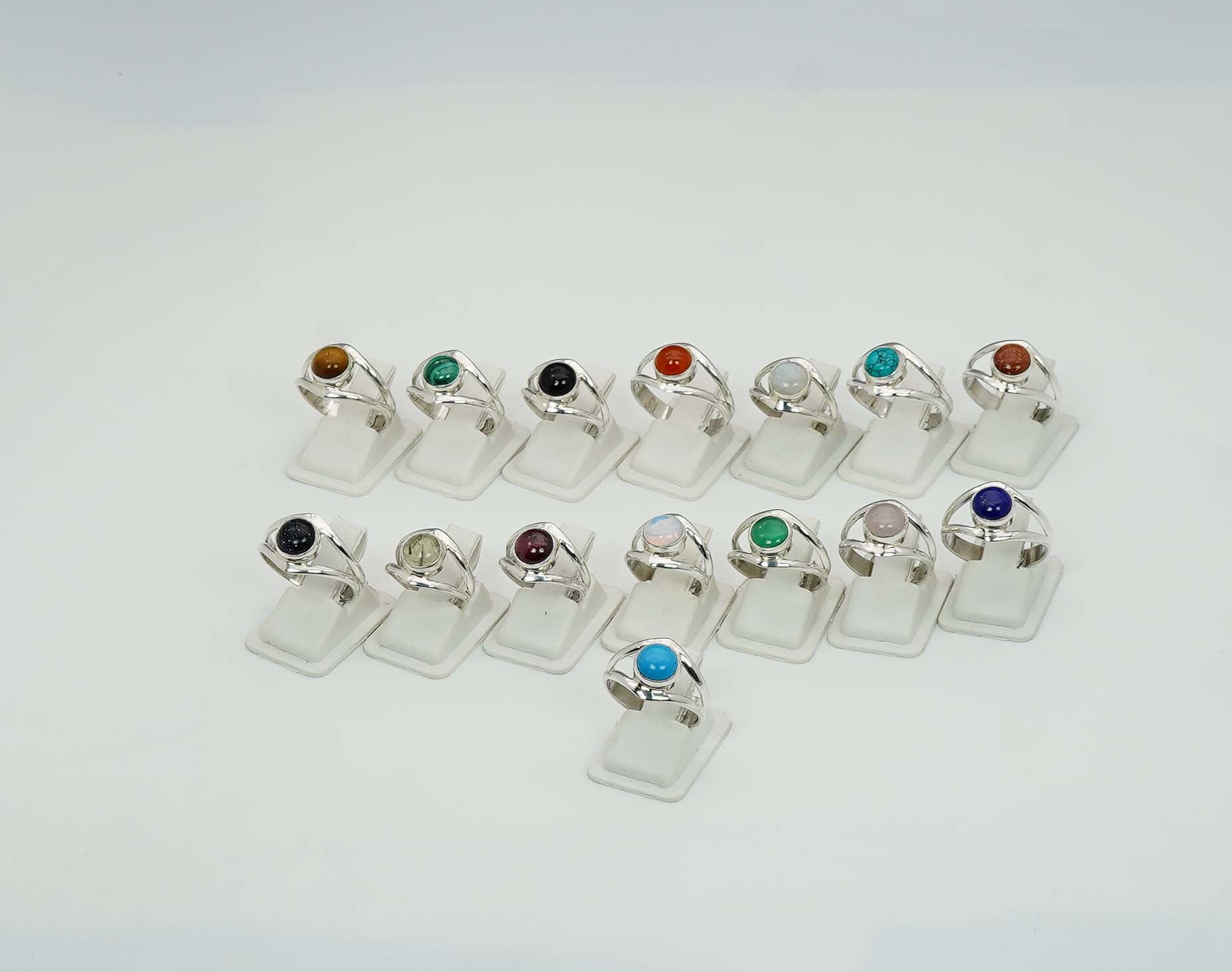 Wholesale 925 15PC Sterling Silver Red Carnelian Opalite Mix Stone Ring Lot