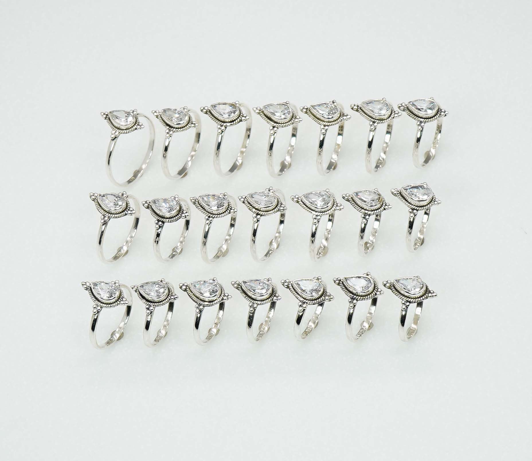 Wholesale 925 21PC Solid Sterling Silver Faceted White Topaz Ring Lot