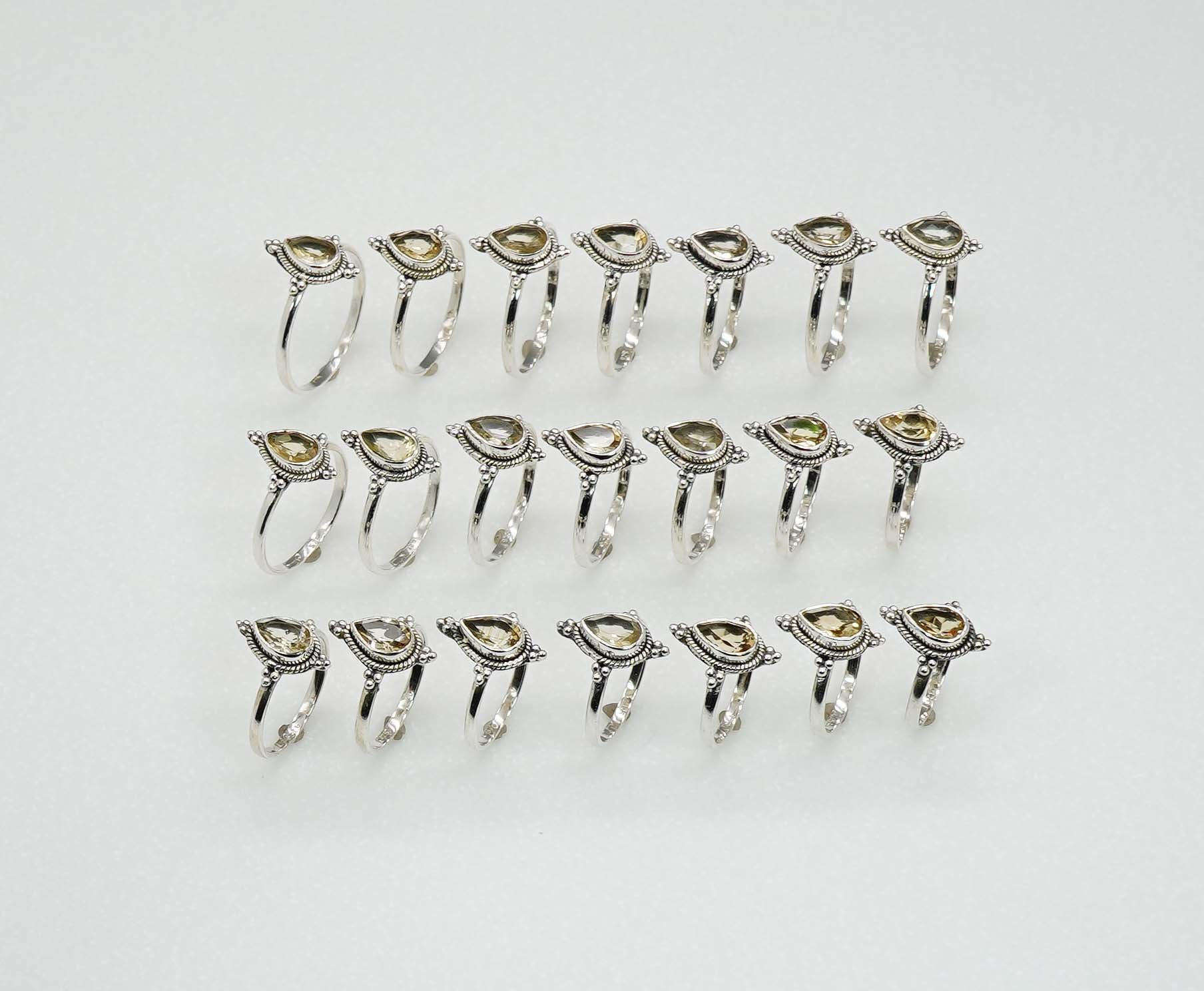 Wholesale 925 21PC Solid Sterling Silver Faceted Yellow Citrine Ring Lot