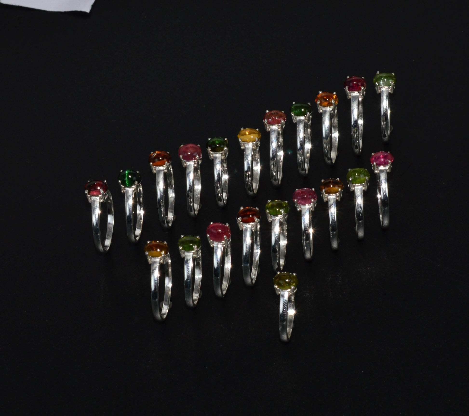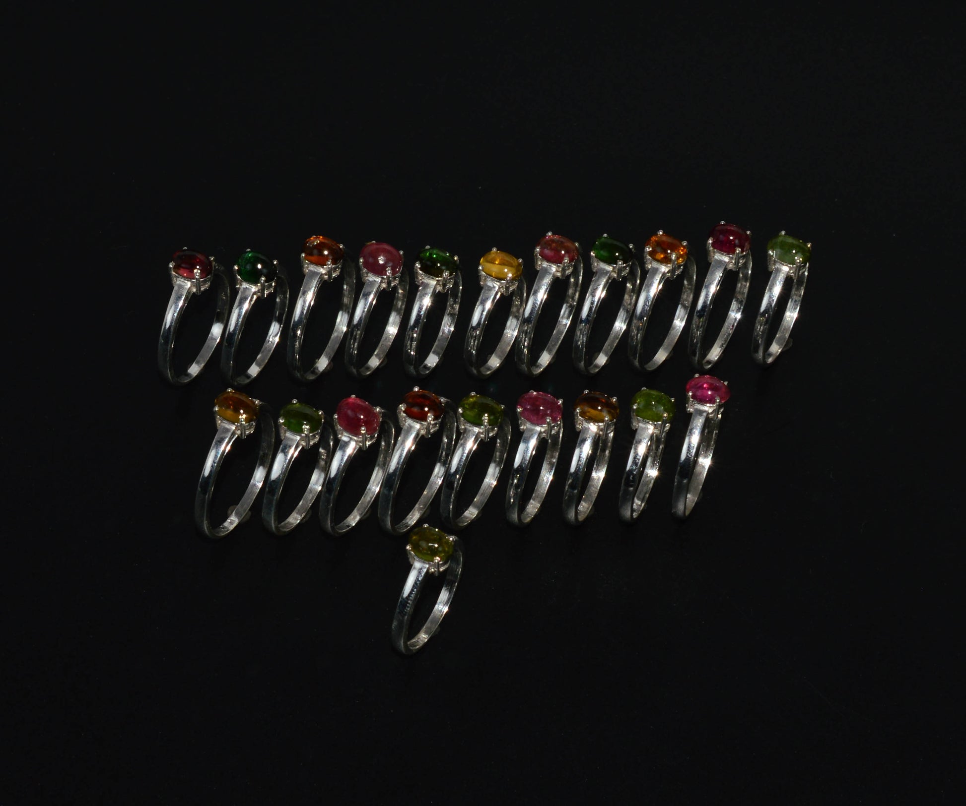 WHOLESALE 925 21PC SOLID STERLING SILVER TOURMALINE MIX STONE RING LOT