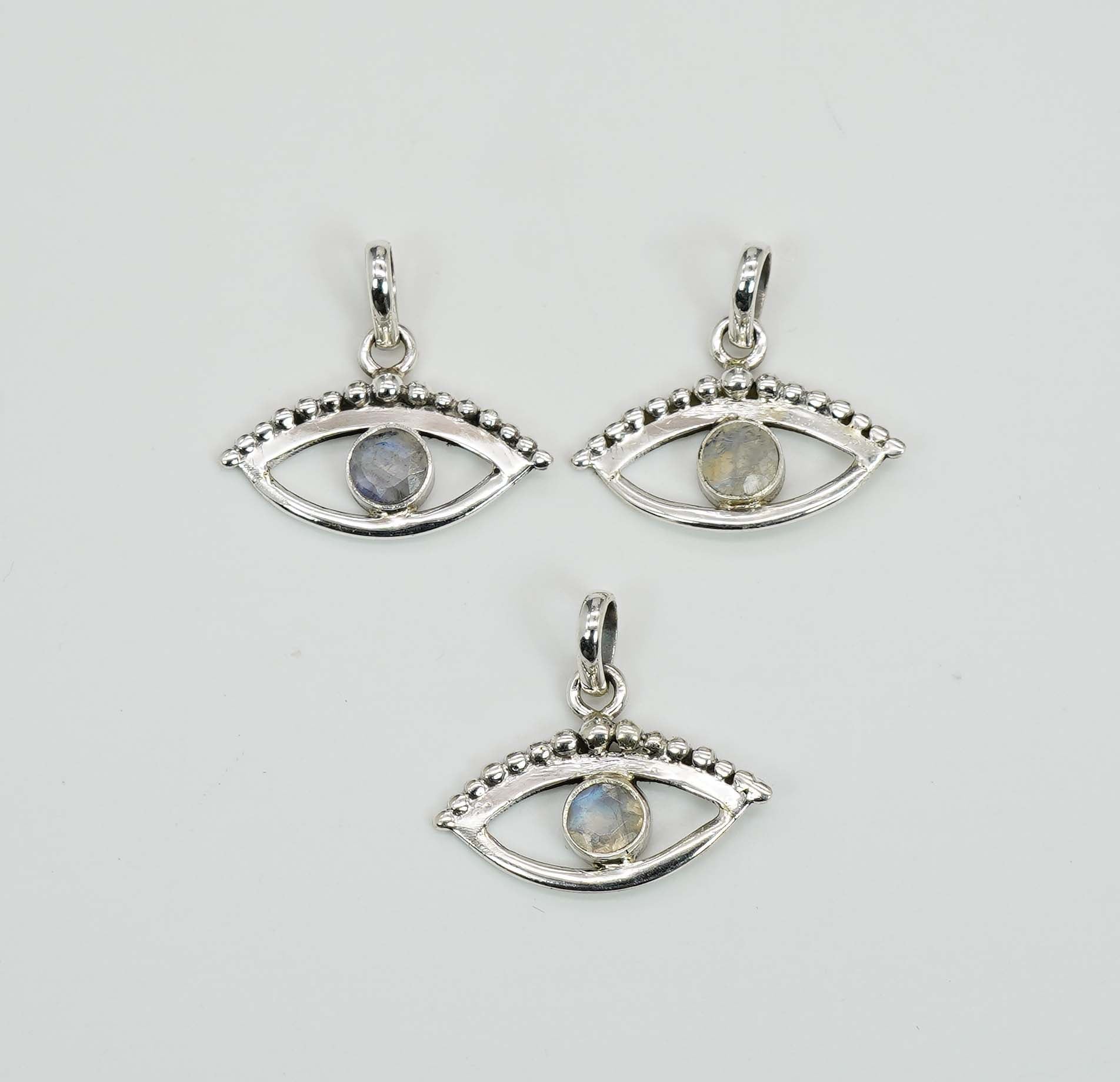 Wholesale 925 3PC Sterling Silver Cut Rainbow Moonstone Eye Style Pendant Lot