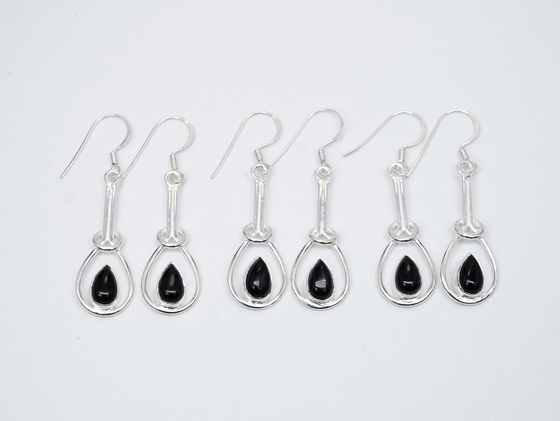 Wholesale 925 3PR Solid Sterling Silver Black Onyx Hook Earring Lot