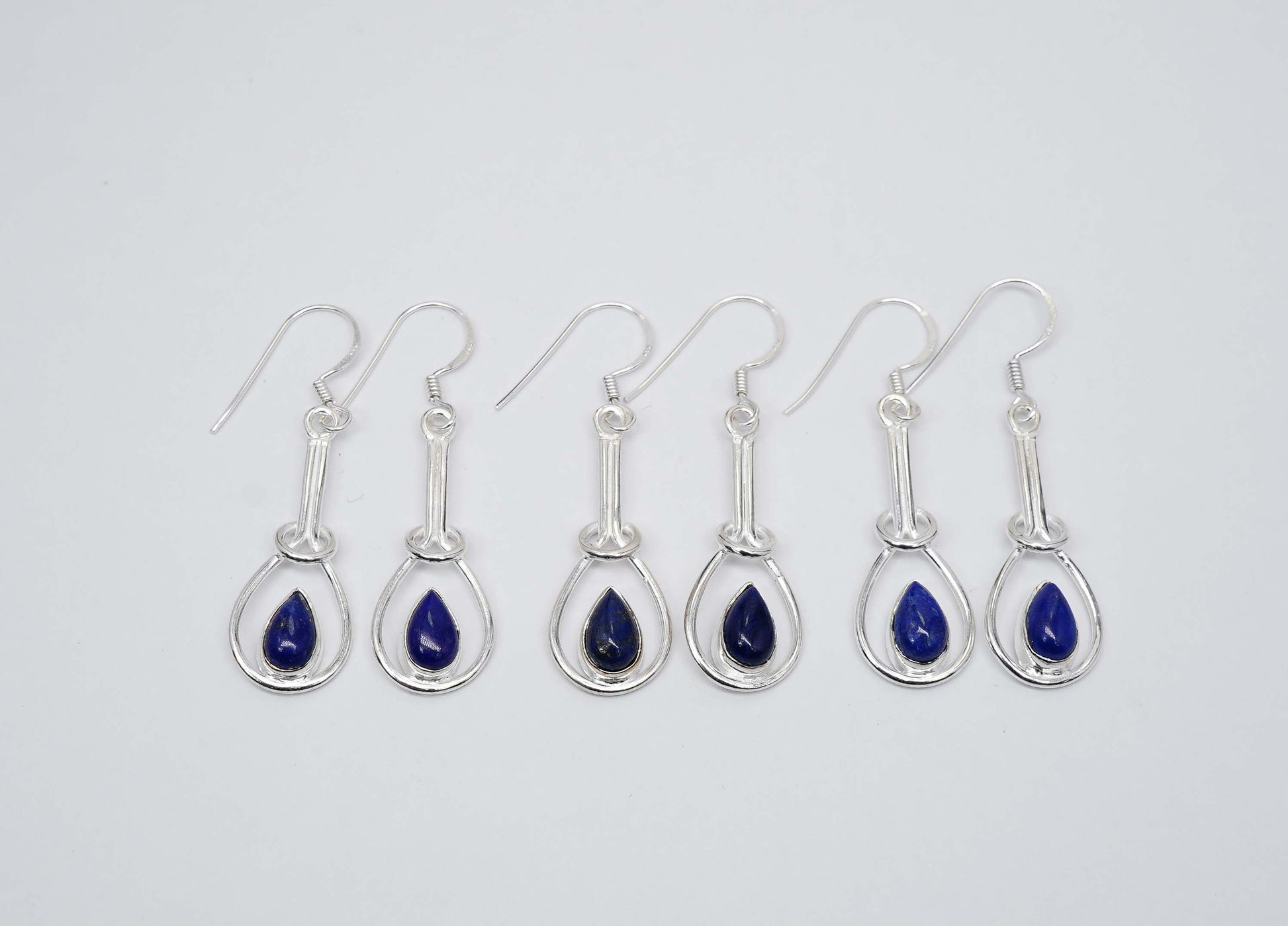 Wholesale 925 3PR Solid Sterling Silver Blue Lapis Lazuli Hook Earring Lot