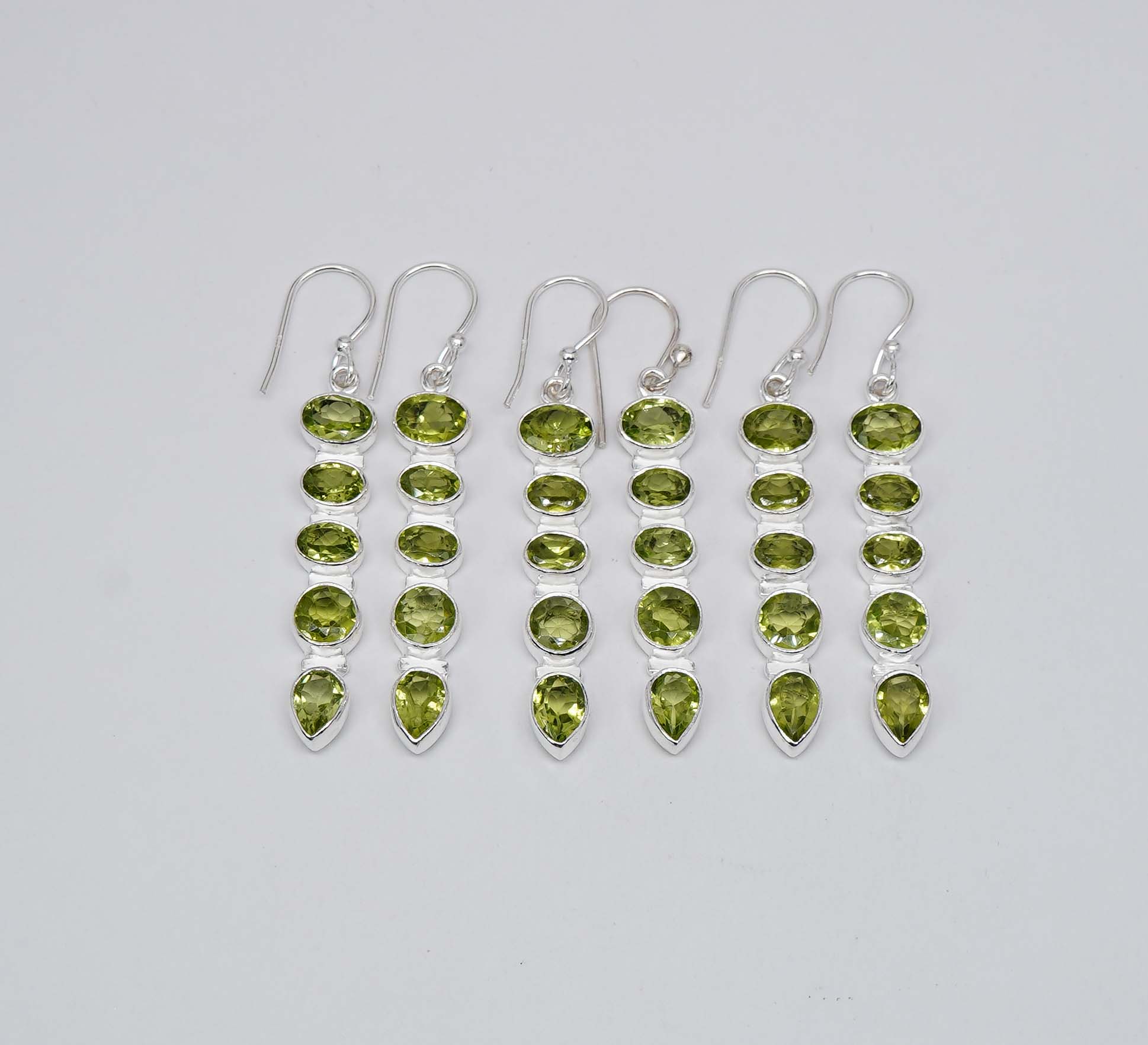 Wholesale 925 3PR Sterling Silver Faceted Green Peridot Hook Earring Lot