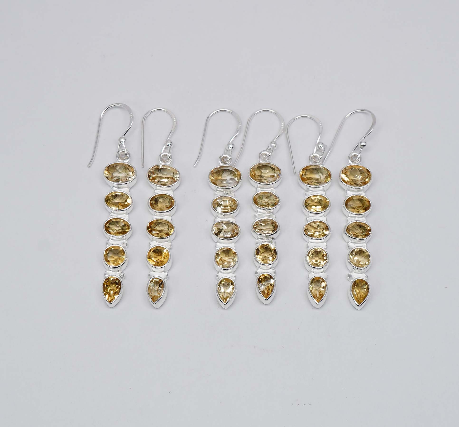 Wholesale 925 3PR Sterling Silver Faceted Yellow Citrine Hook Earring Lot