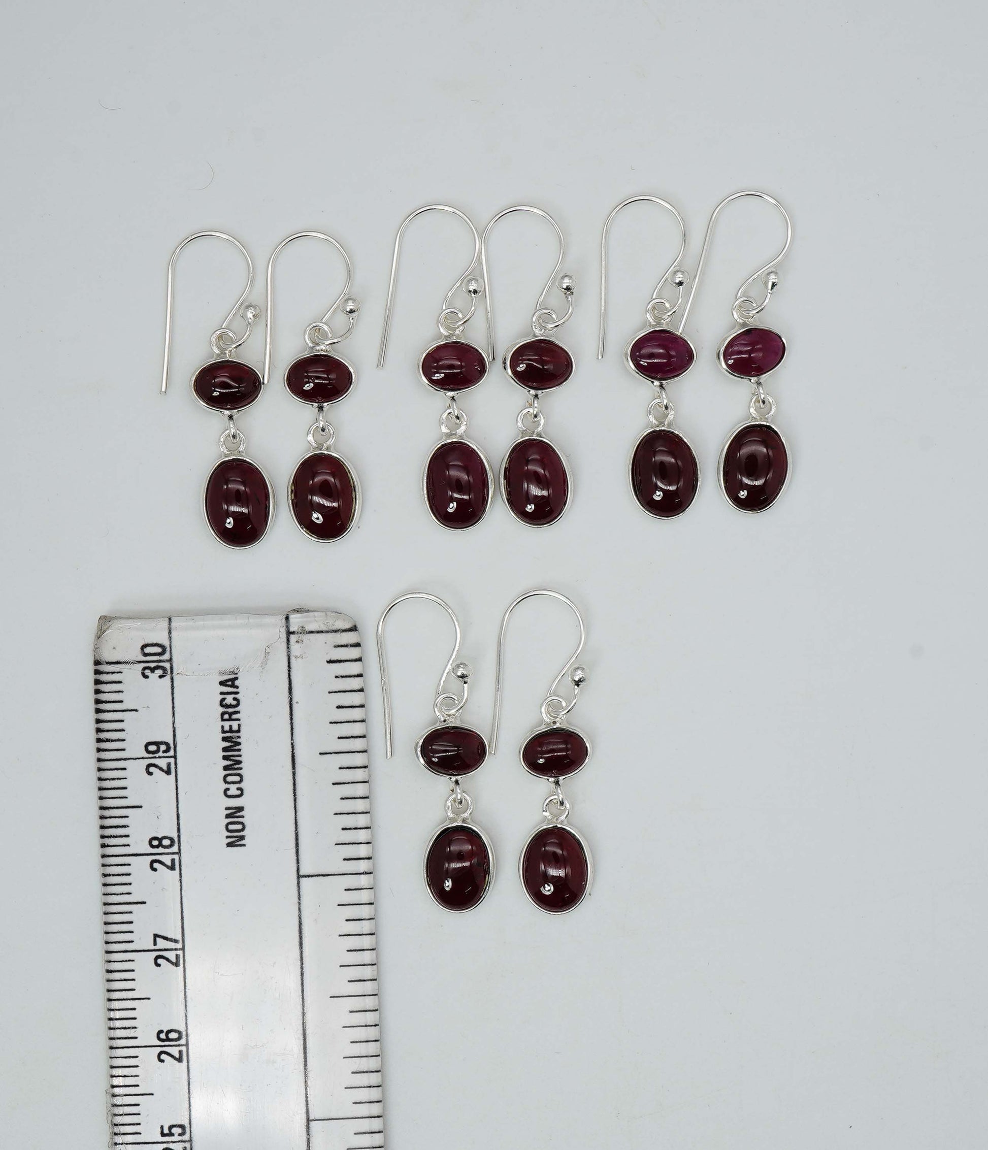 Wholesale 925 4PR Solid Sterling Silver Red Garnet Hook Earring Lot