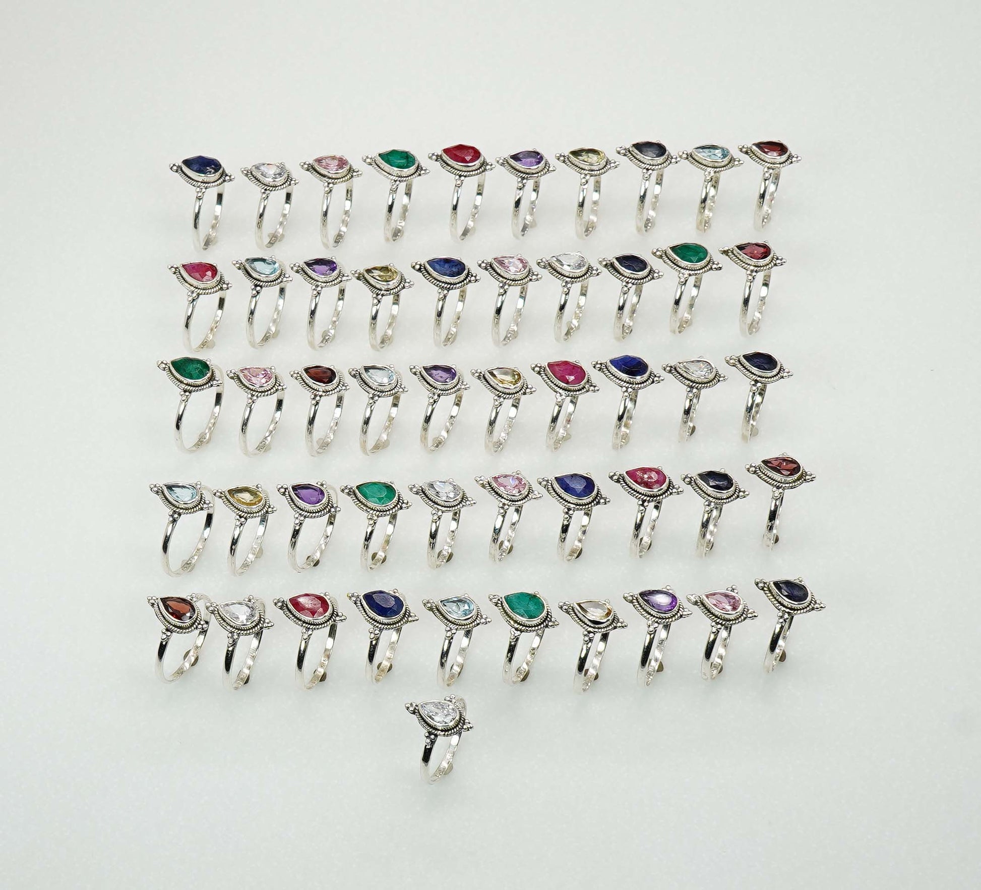 Wholesale 925 51PC Solid Sterling Silver Cut Topaz Amethyst Mixstone Ring Lot
