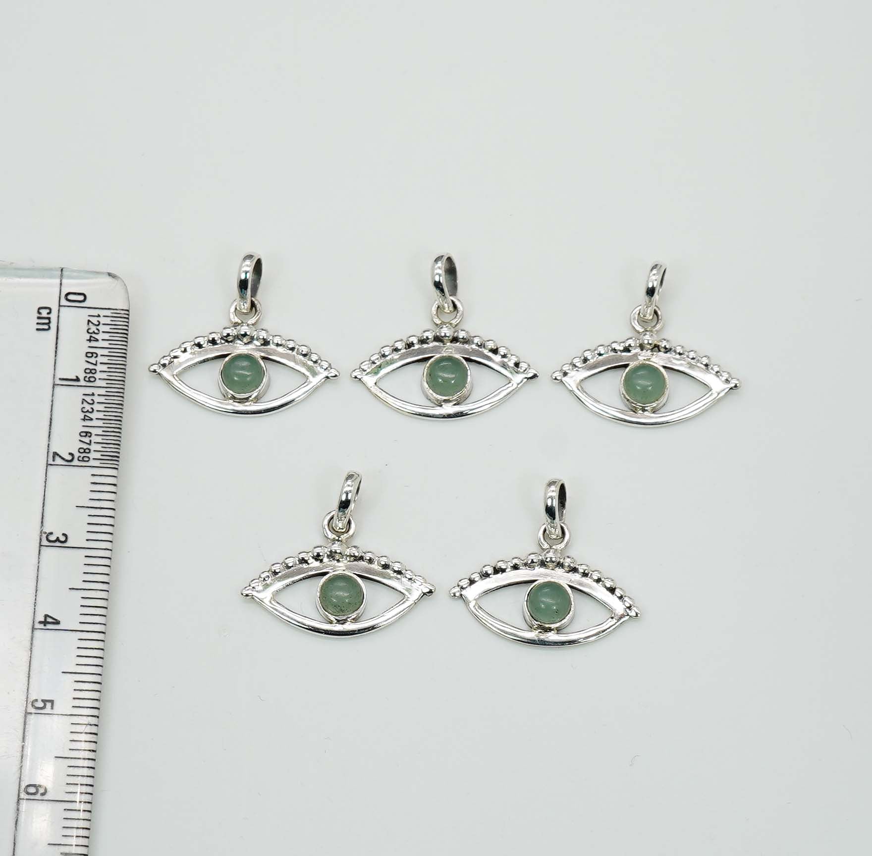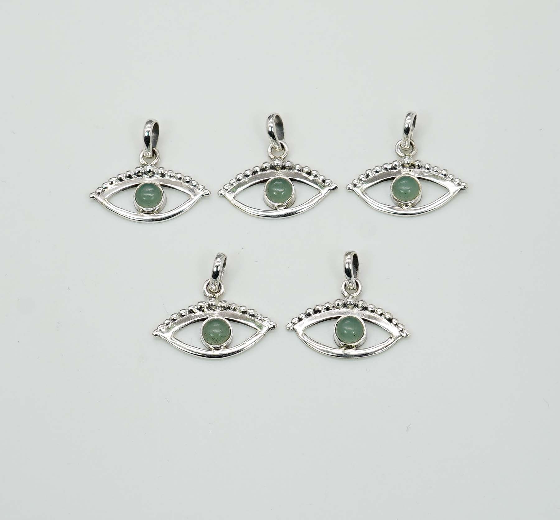 Wholesale 925 5PC Solid Sterling Silver Aqua Chalcedony Eye Style Pendant Lot