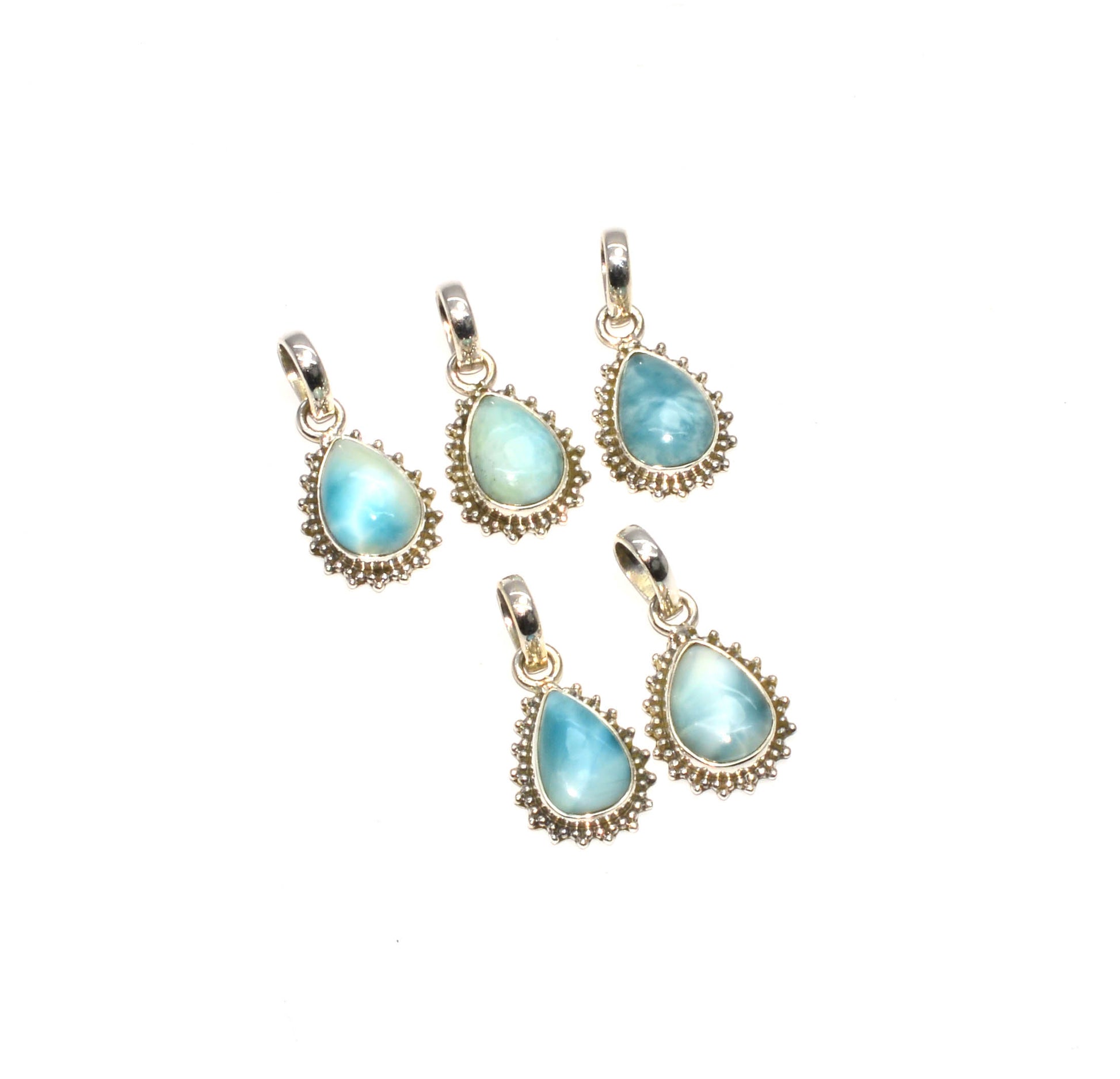 WHOLESALE 925 5PC SOLID STERLING SILVER BLUE LARIMAR PENDANT LOT