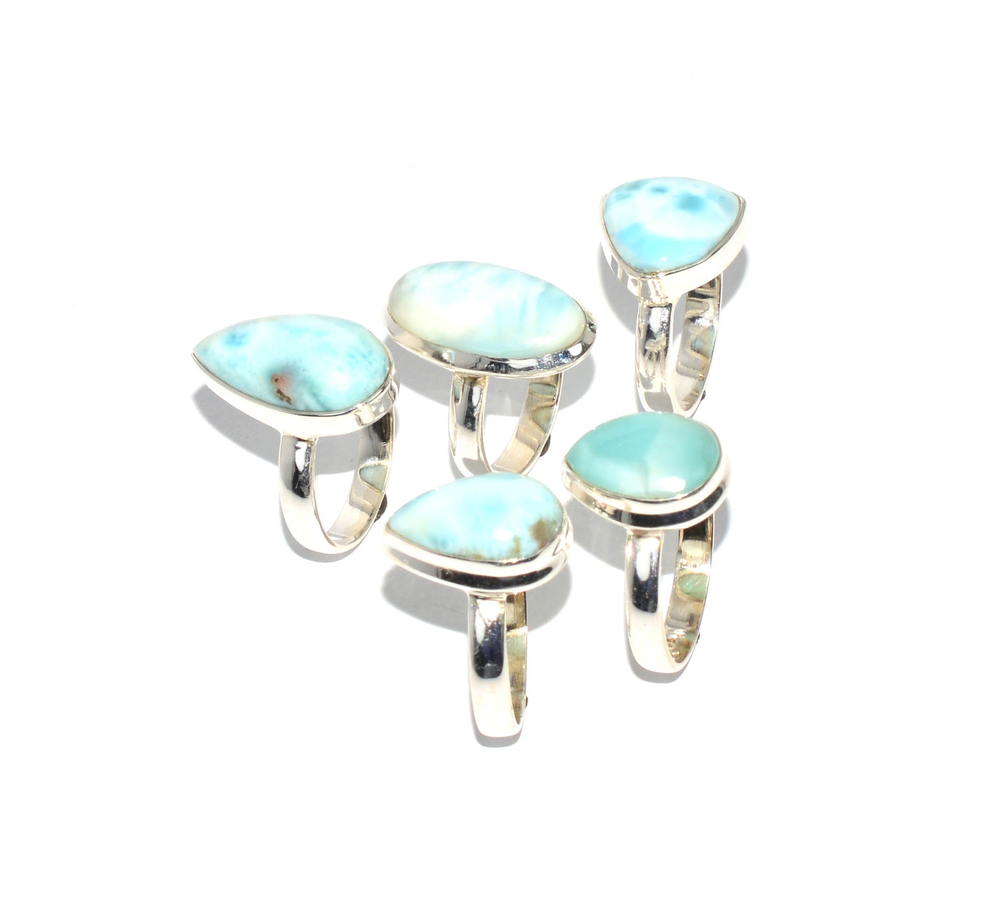 WHOLESALE 925 5PC SOLID STERLING SILVER BLUE LARIMAR RING LOT